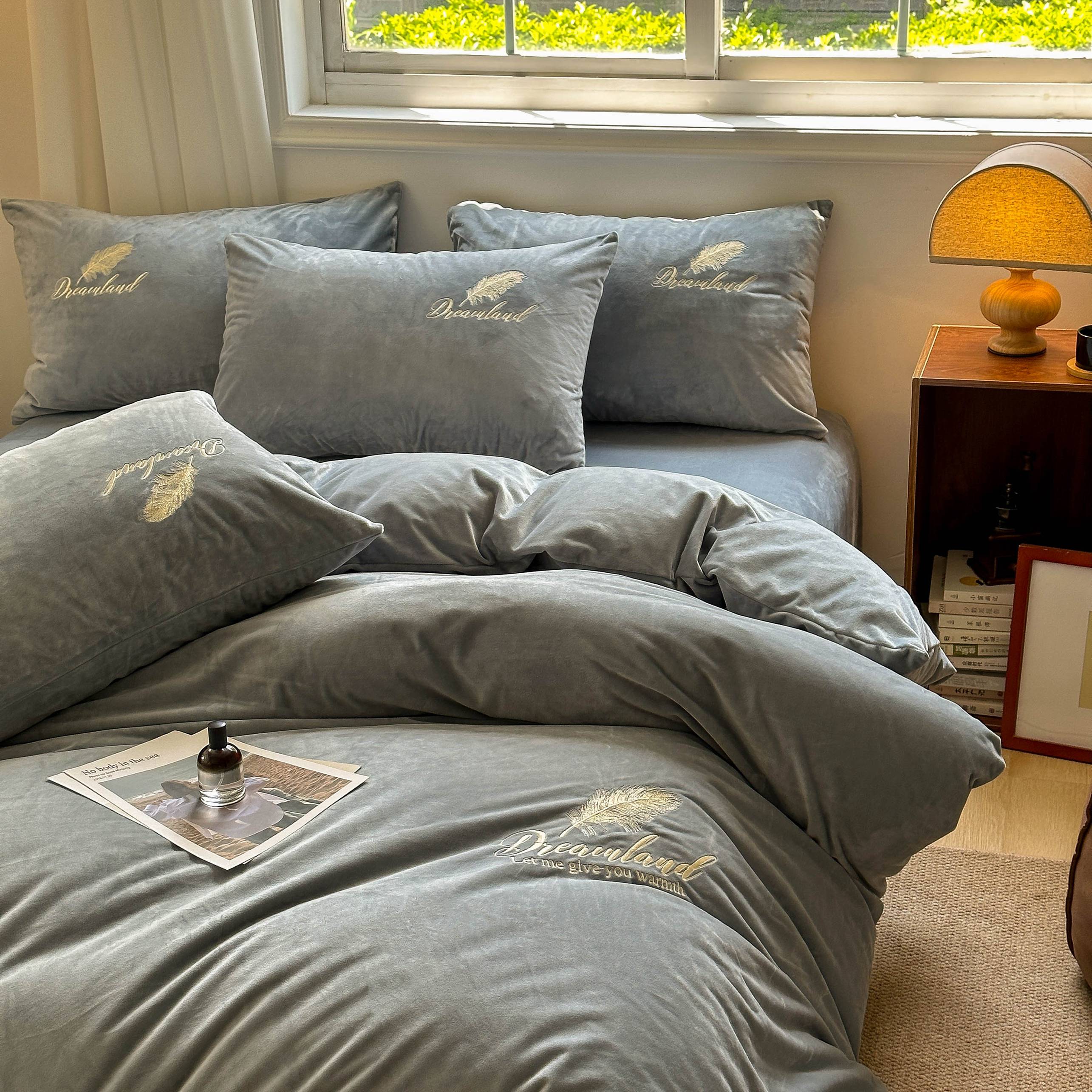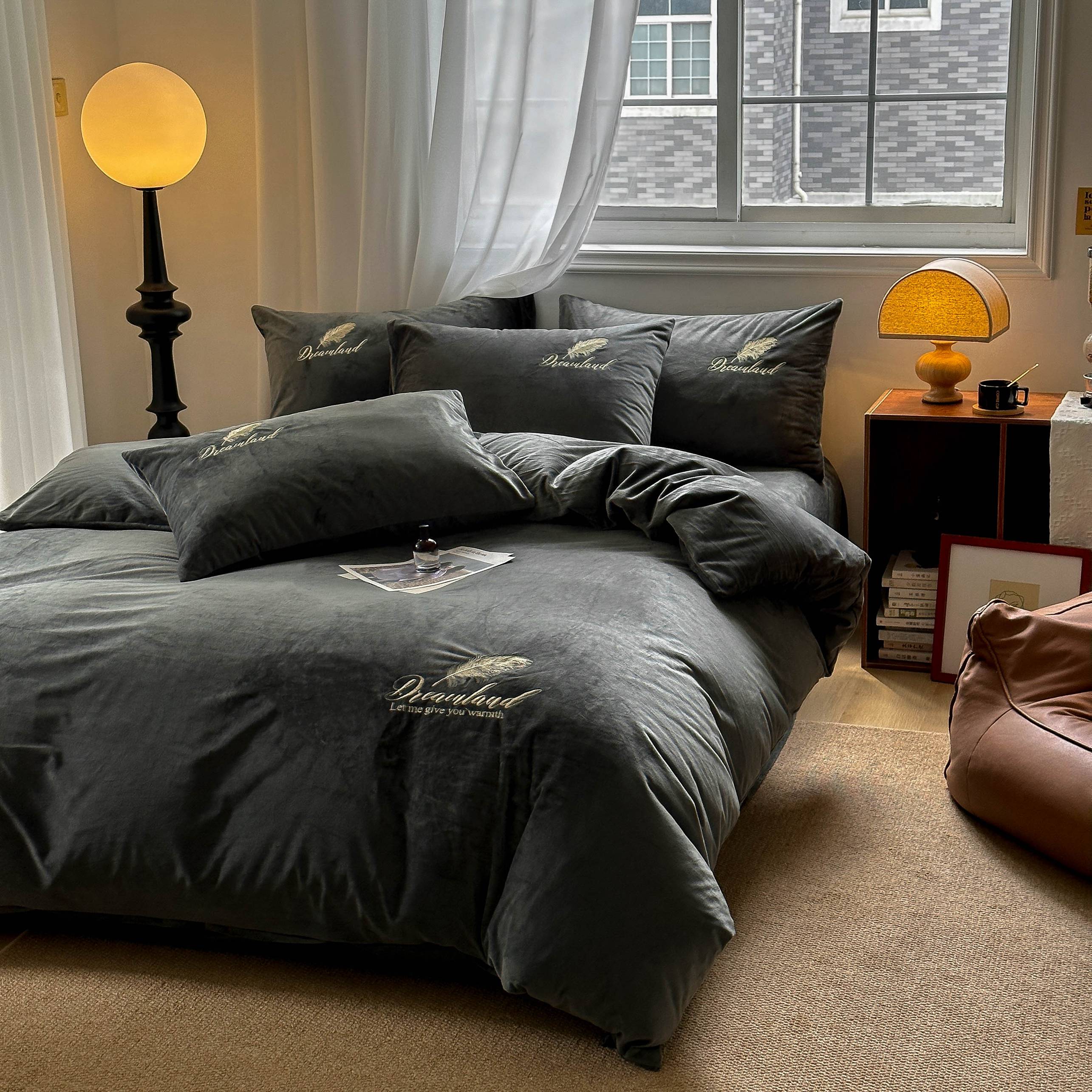当前位置: 91家纺网 > 商品网购 > 床品套件 > 四件套 > 牛奶绒四件套 > 爱彼家纺 2025新款牛奶绒刺绣四件套--羽毛系列-风格一 羽毛-深灰