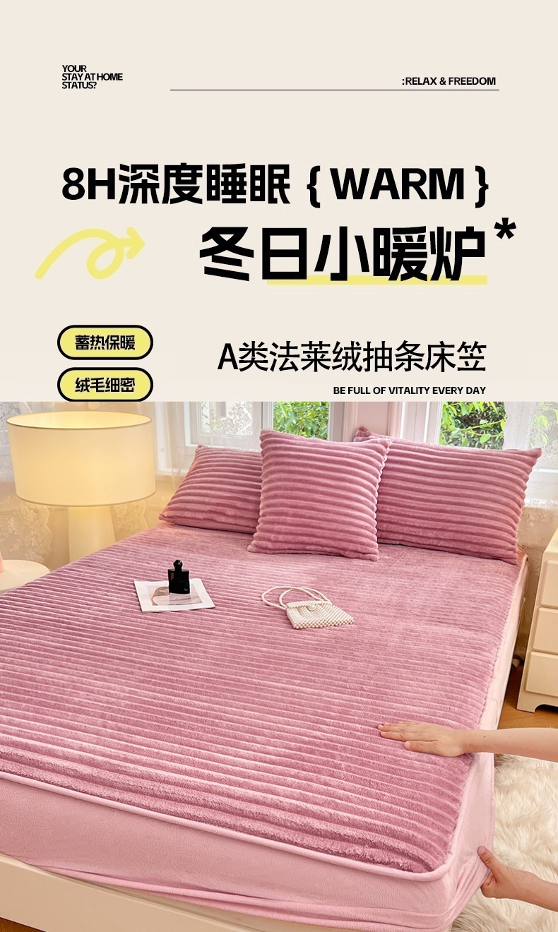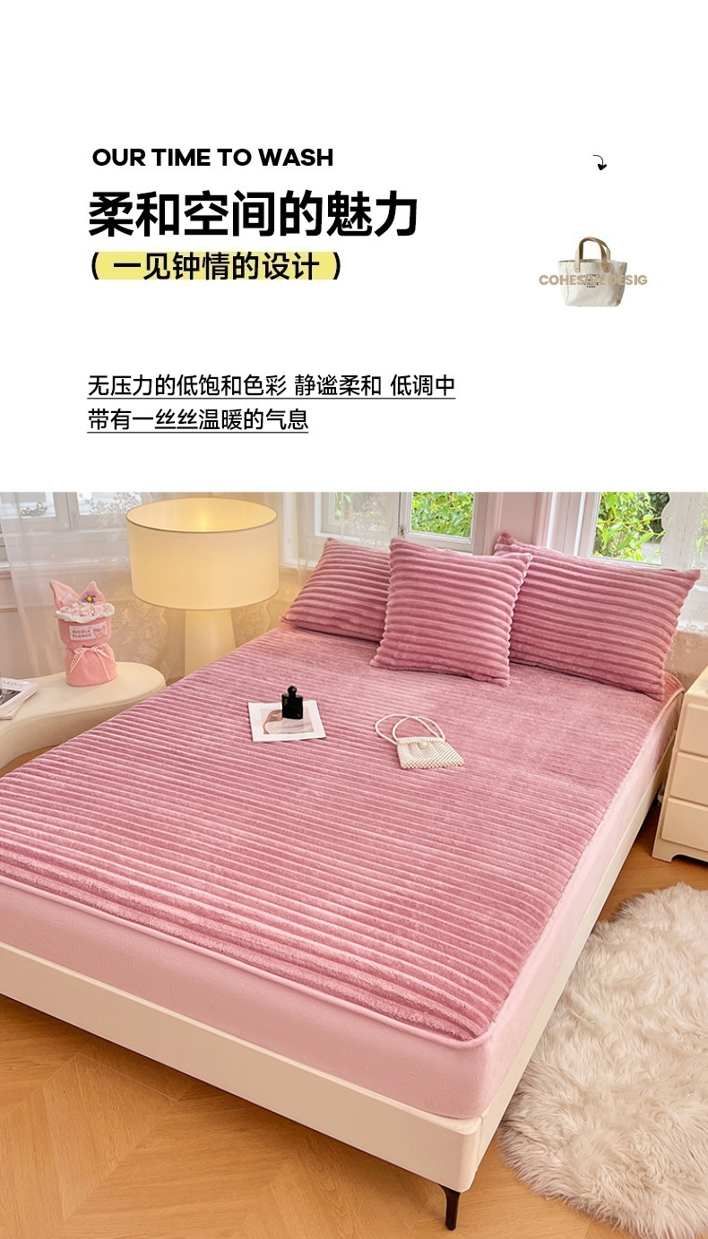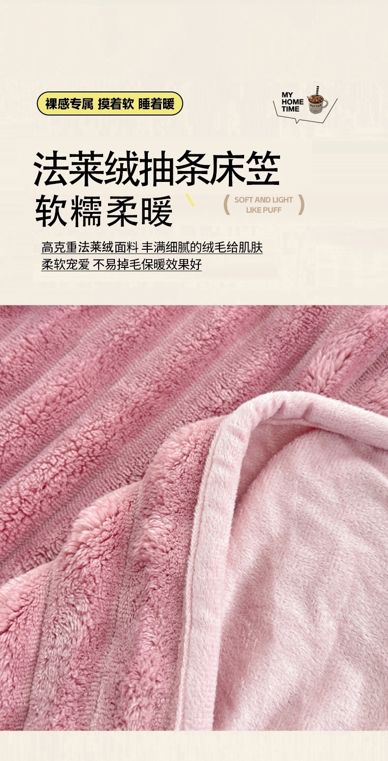 • 91家纺网 家纺一手货源 找家纺 梦舒羽 2025新款法莱绒床笠法兰绒床垫保护套牛奶绒兔毛绒席梦思床垫套-抽条 法莱绒抽条-云梦粉