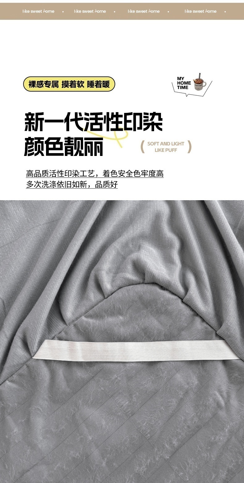 商品名称:圣比熊 2025新款兔毛绒床裙法兰绒床垫保护罩牛奶绒床垫法莱绒床单罩-抽条 兔毛绒抽条-烟雨灰