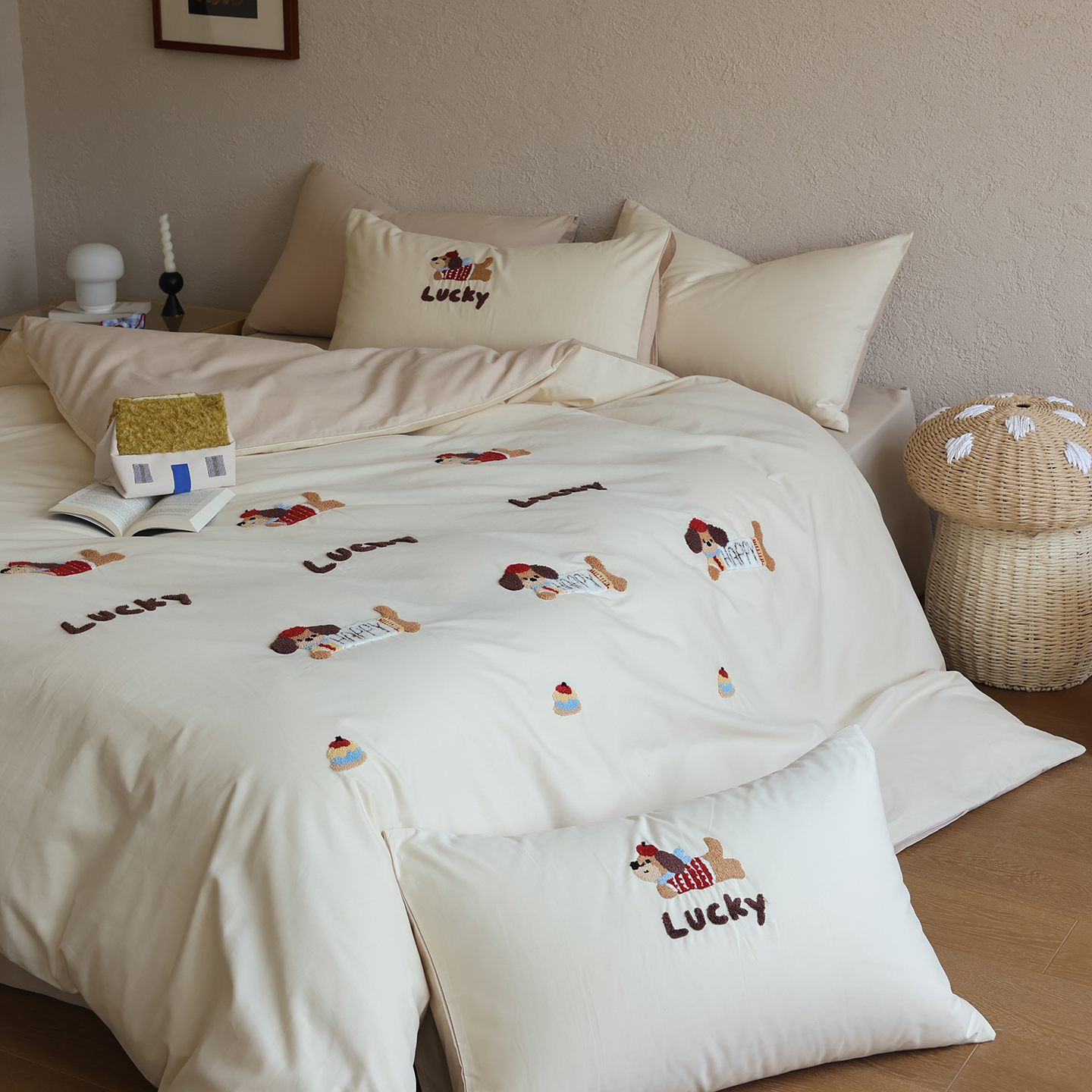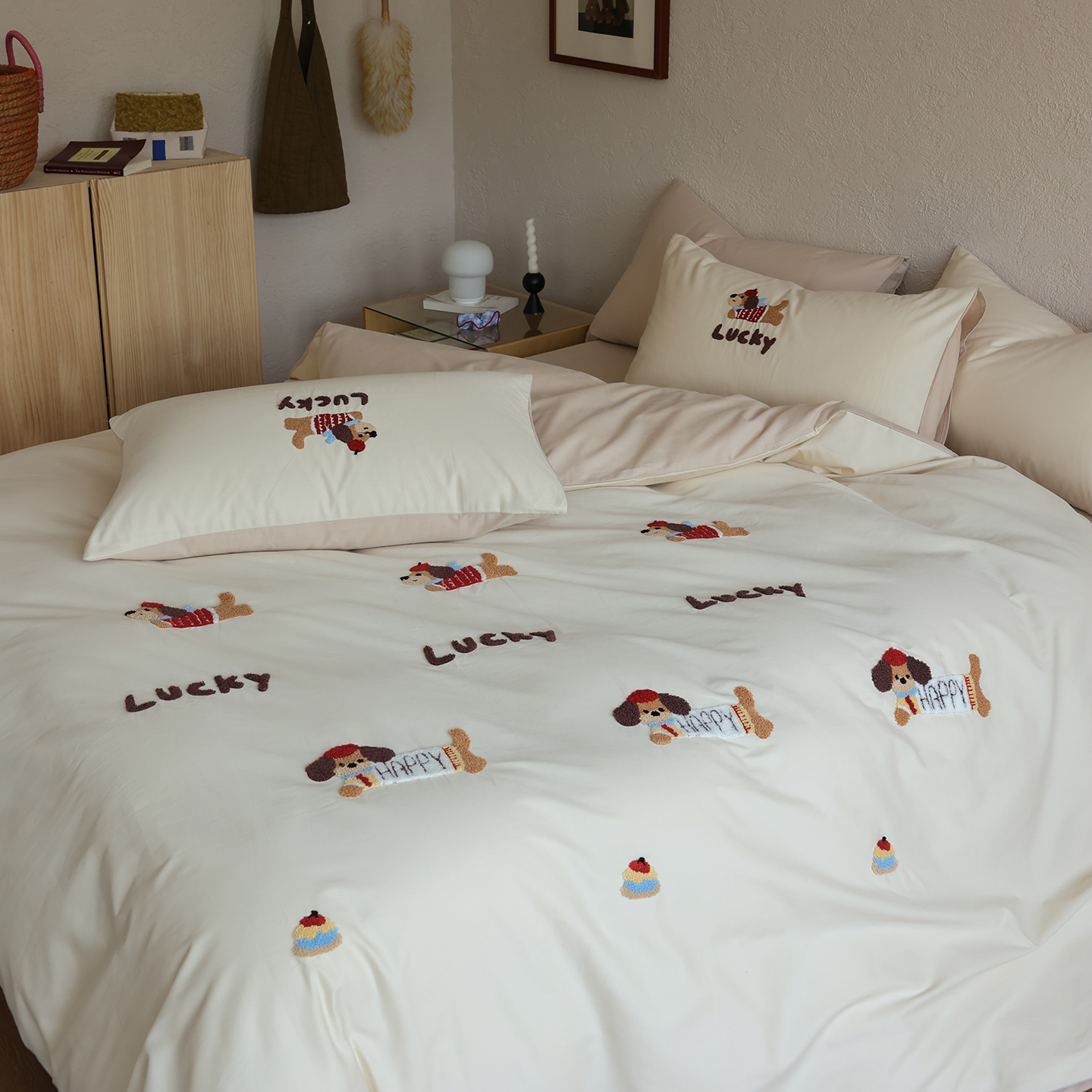 当前位置: 91家纺网 > 商品网购 > 床品套件 > 四件套 > 全棉普通四件套 > 时光里 2025新款全棉100S卡通风磨毛毛巾绣四件套 呆萌法斗犬