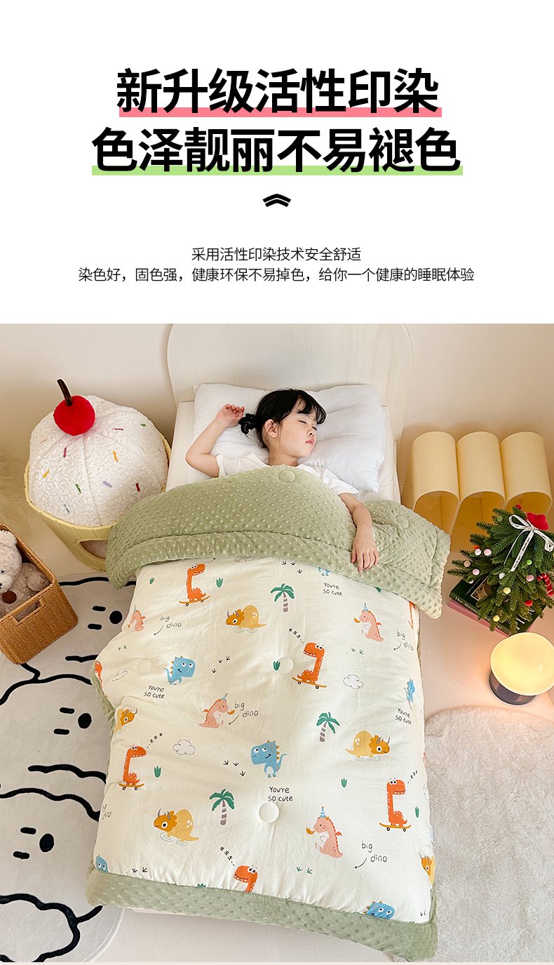 (总)嗨生活 2025新款牛奶绒儿童被幼儿园冬被春秋被,飞机恐龙,乖乖兔,皇冠恐龙,卡通小恐龙,可爱狮子,可爱小兔,快乐熊猫,快乐宇航熊,萌萌汽车,暖羊羊,挖掘机,消防警车,幸运猫,幸运女孩