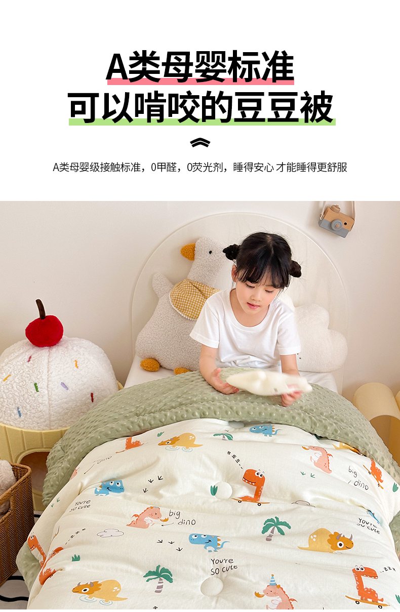 (总)嗨生活 2025新款3D触感全棉豆豆被儿童豆豆被春秋被冬被幼儿园一体款被子,安妮兔,宝宝巴士,彩色童趣,动物园,恐龙聚会,萌宠恐龙,奶味小兔,汽车滴滴,童话乐园,小恐龙,银河之旅,宇航漫步