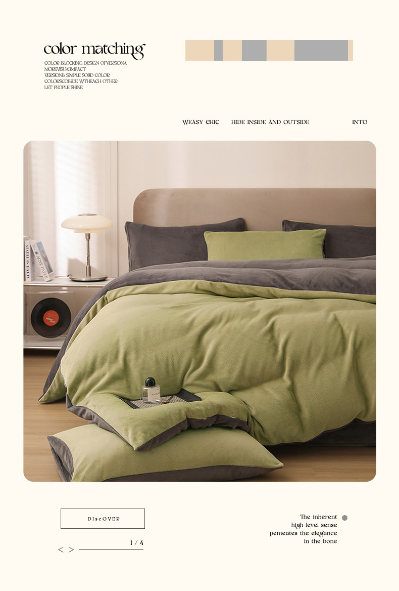 (总)大元 2025新款A类高克重素色双拼牛奶绒四件套,榄绿-深灰,米白-米灰,米白-浅蓝,米白-桃粉,米灰,米杏-奶咖,奶咖-深灰,浅蓝-奶黄,浅蓝-桃粉,深灰,桃粉-米灰,芽绿-奶黄