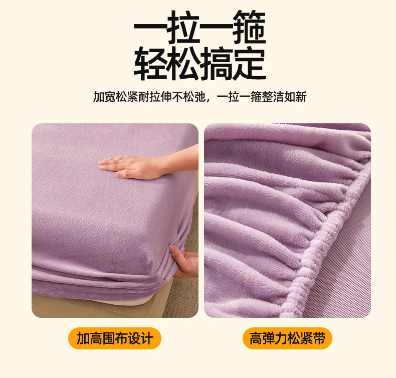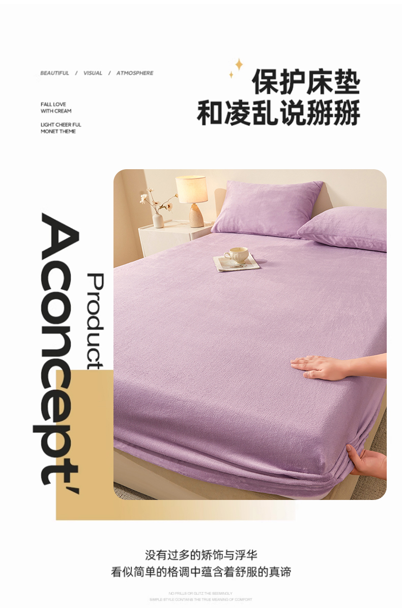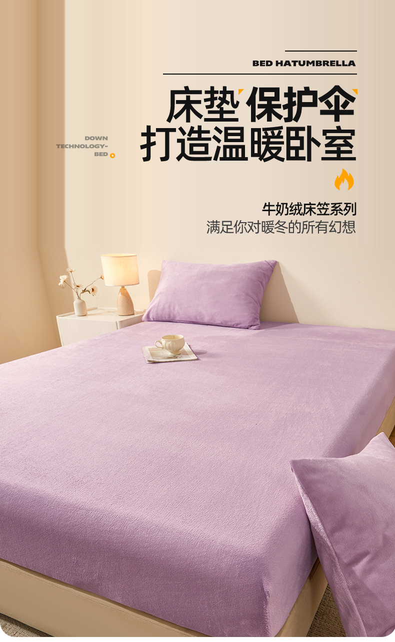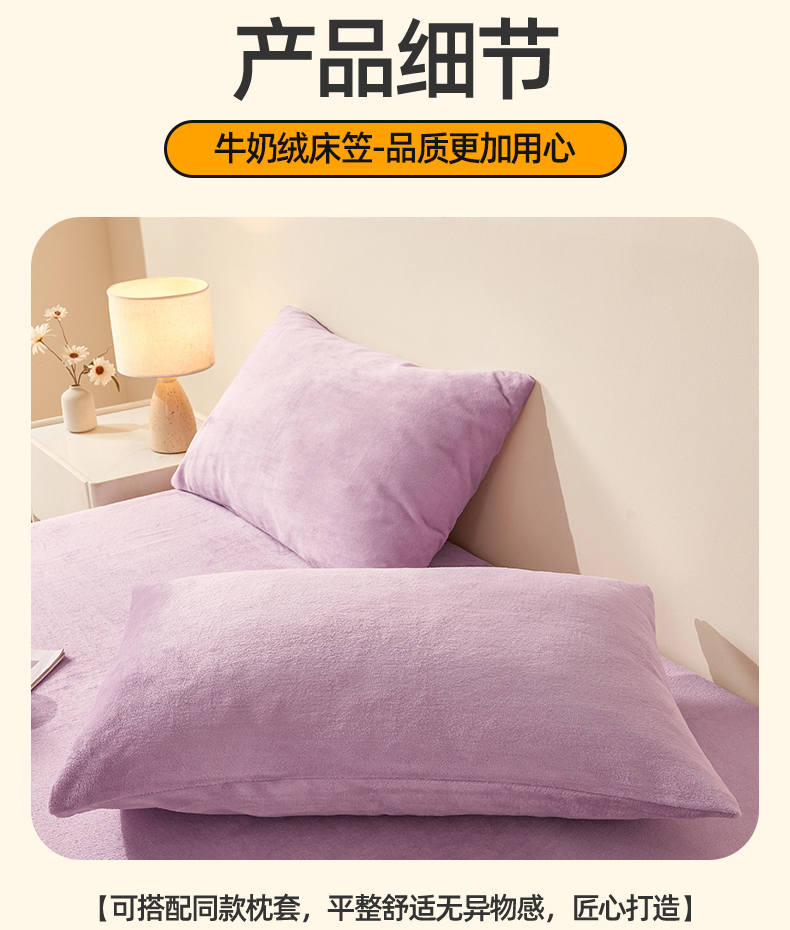 商品名称:优眠坊 2025新款单层高克重牛奶绒纯色床笠 兰花紫