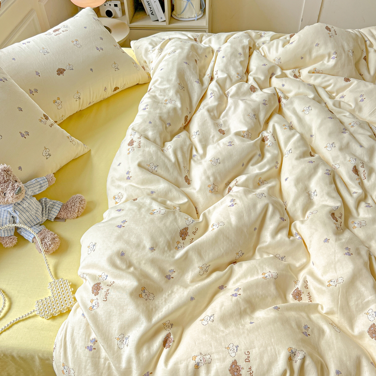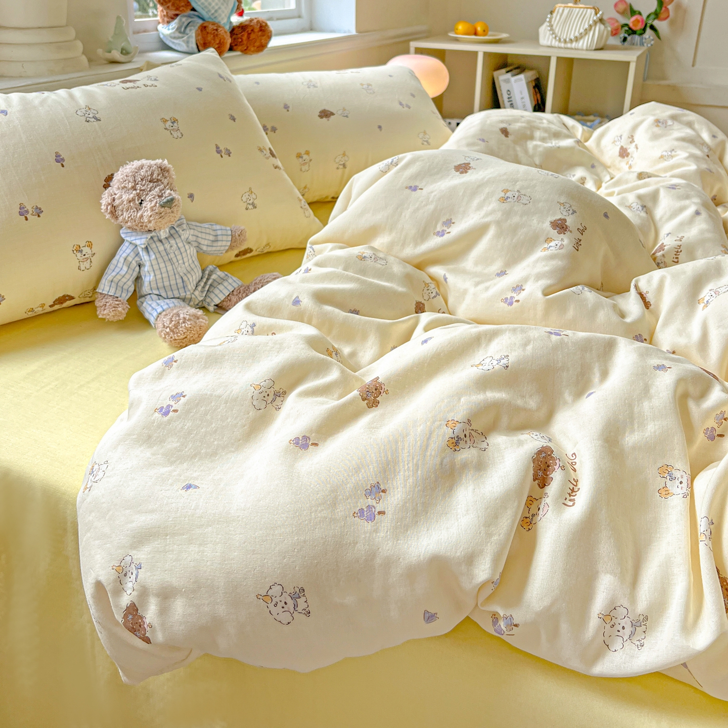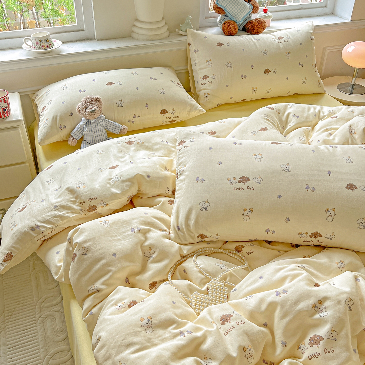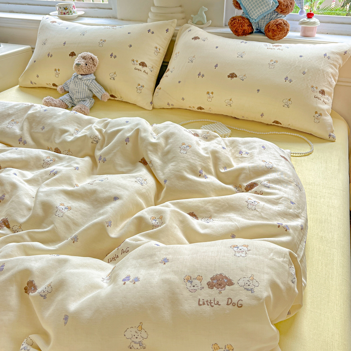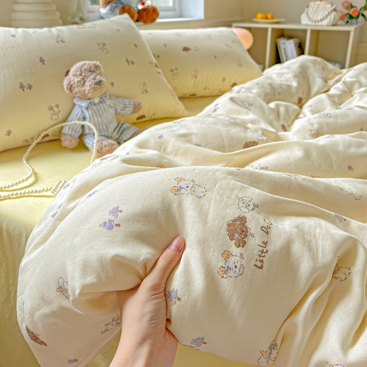 一比一家纺 2025新款全棉双层纱四件套 奶萌狗