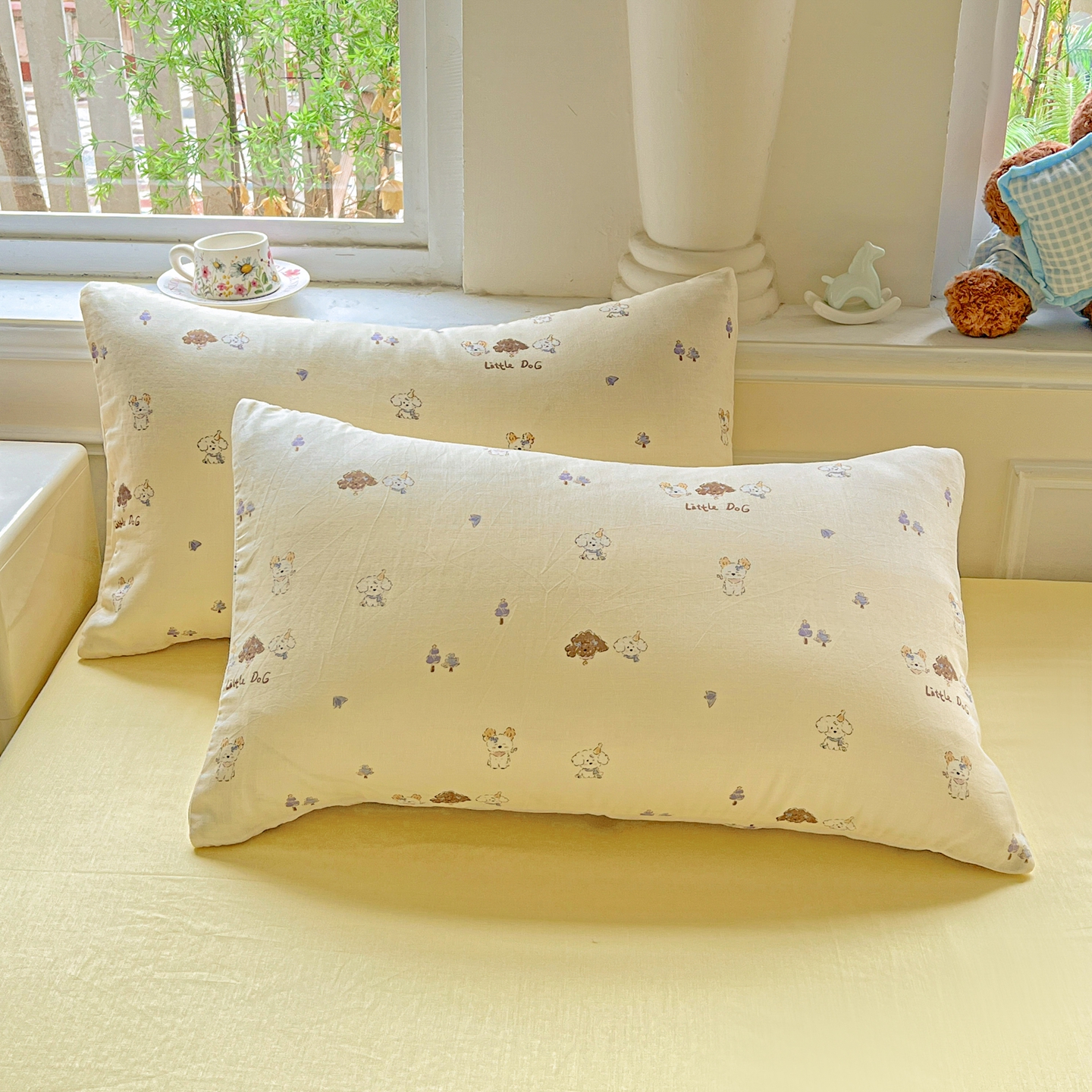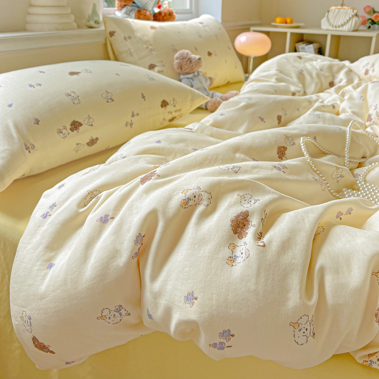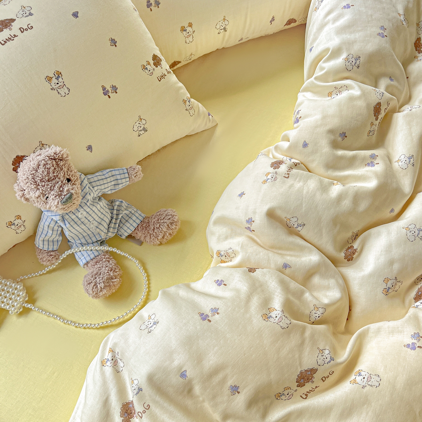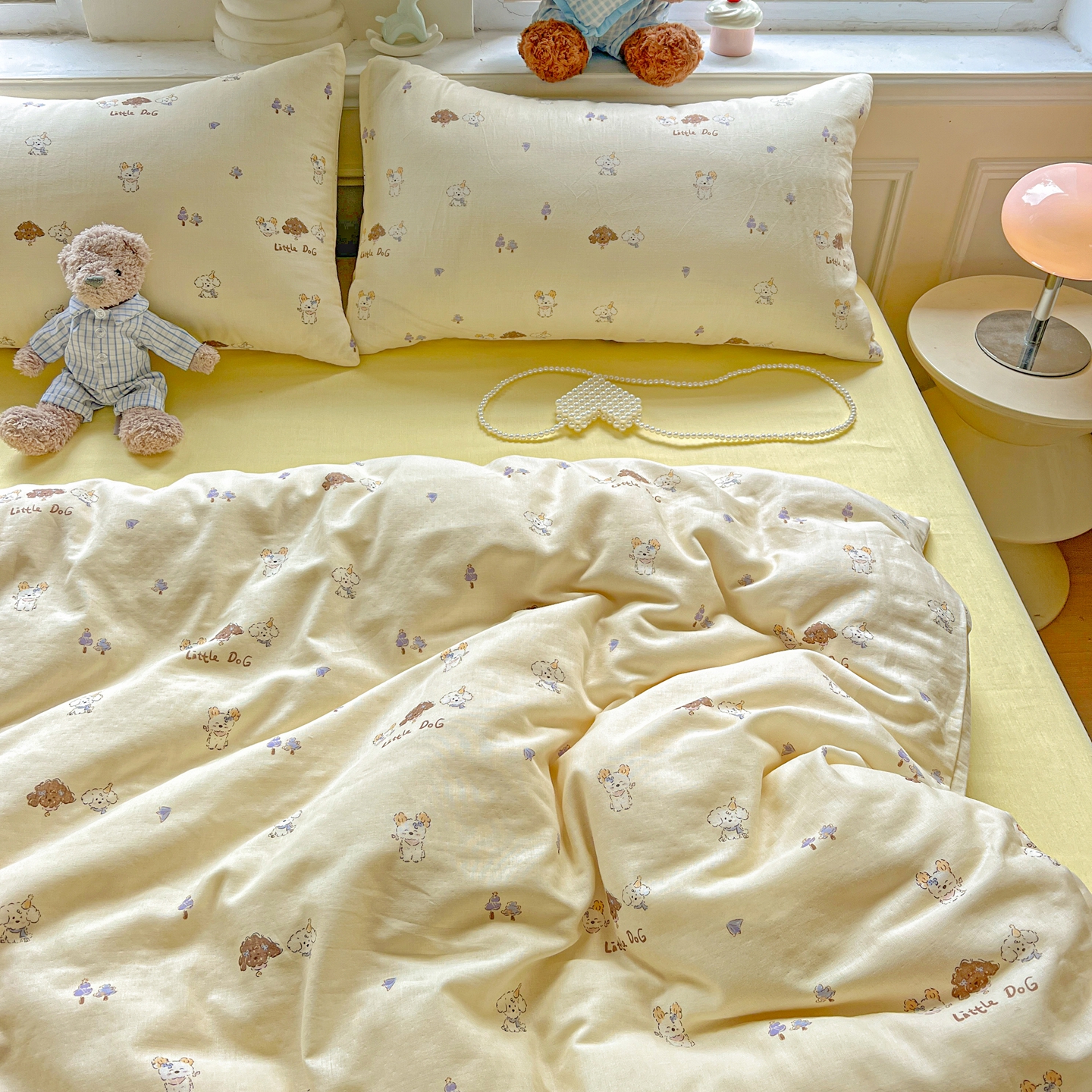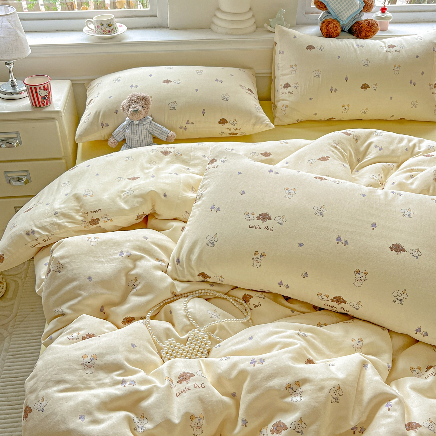 一比一家纺 2025新款全棉双层纱四件套 奶萌狗