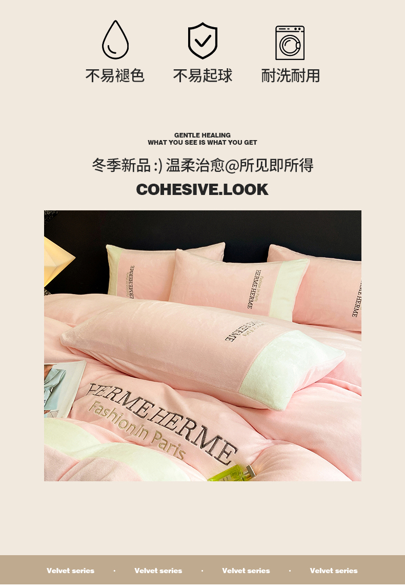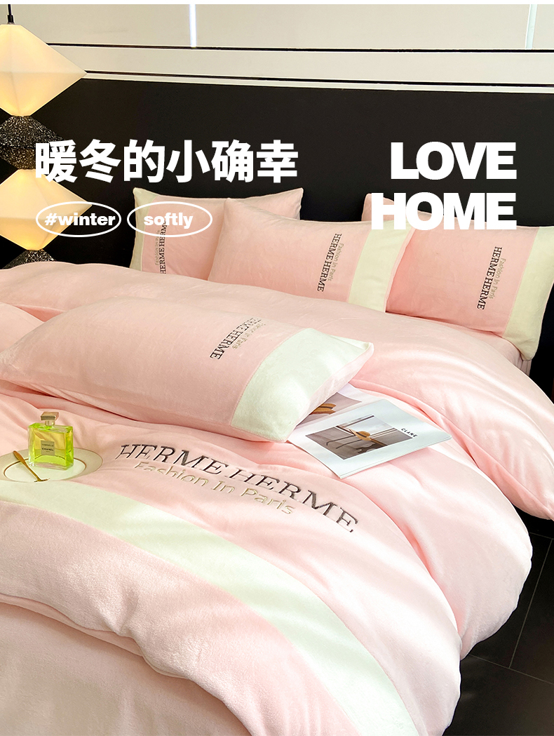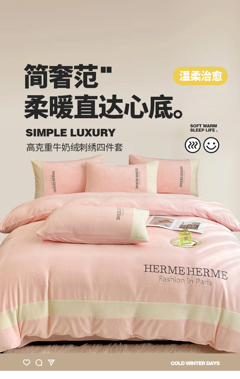 (总)懒猫家纺 2025新款亲肤舒适牛奶绒四件套-可可小姐系列,可可小姐-瓷白,可可小姐-水粉