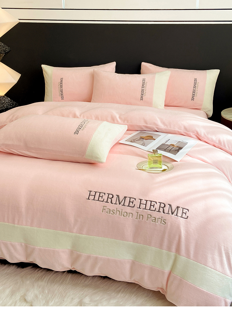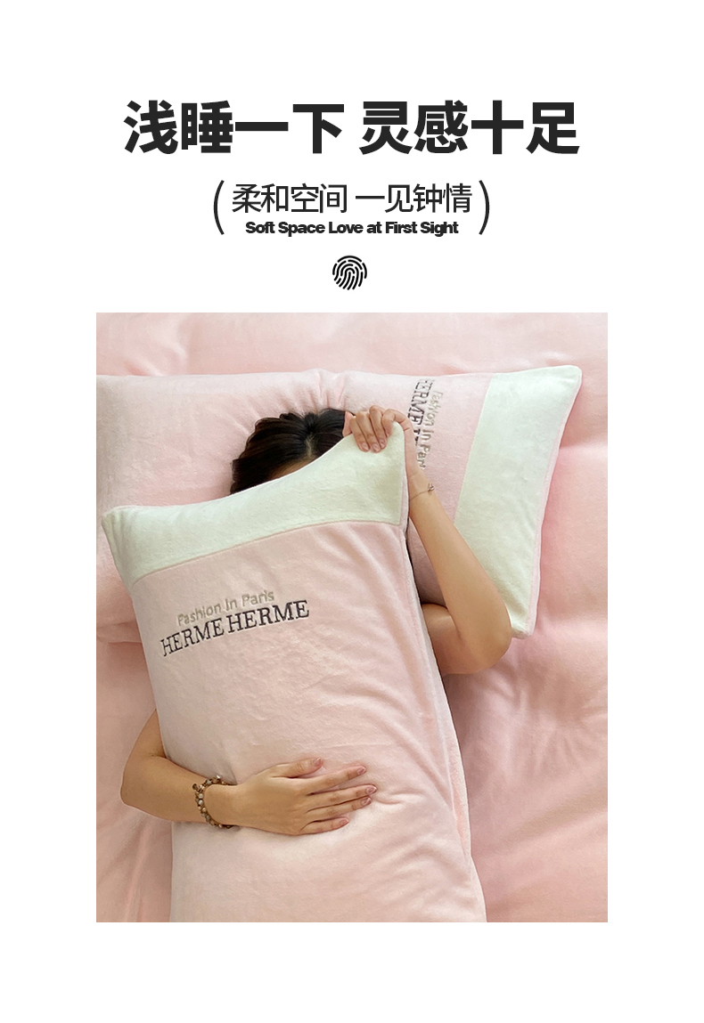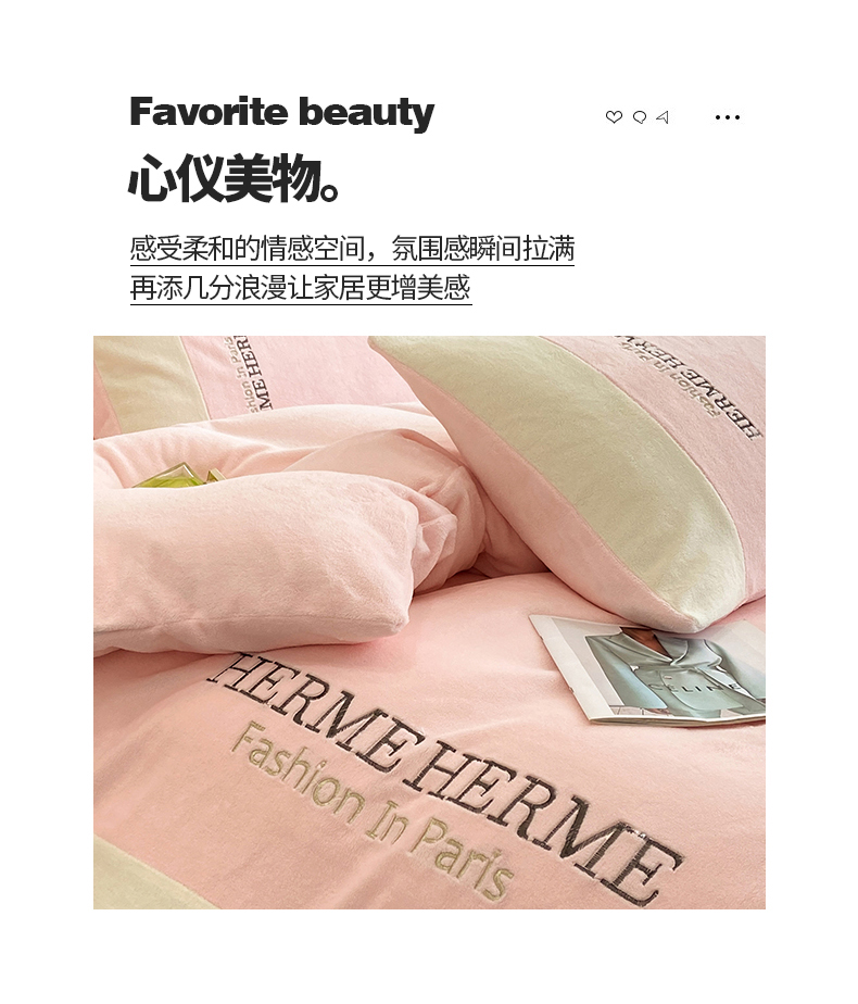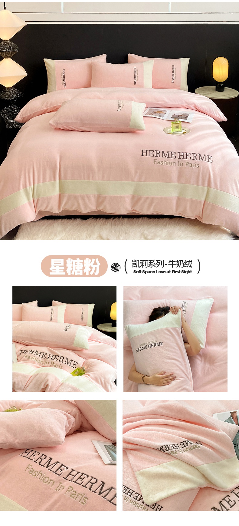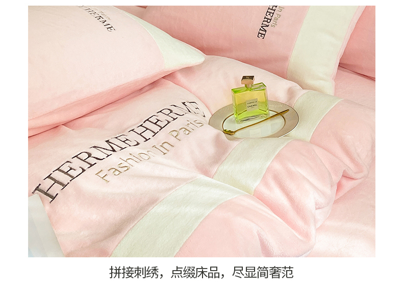 商品名称:懒猫家纺 2025新款牛奶绒刺绣四件套-凯莉 星糖粉
