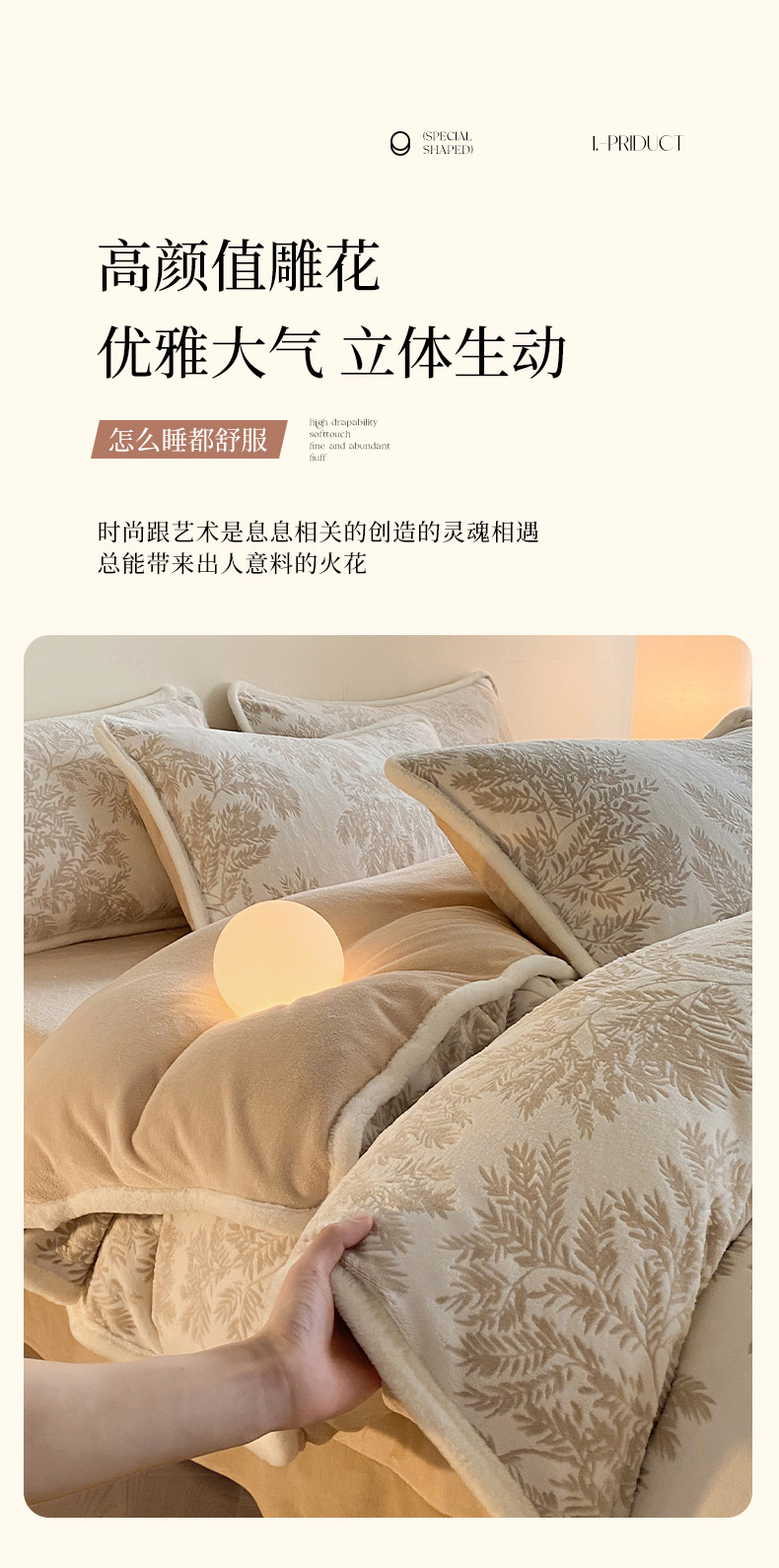 商品名称:绘萱家居 2025新款爆款高密消光包边雕花牛奶绒四件套立体5D 圣彼得-咖
