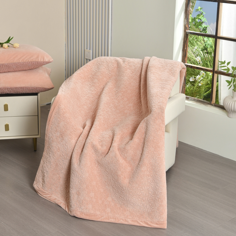 源舜家纺 2025新款天丝棉婴儿绒双面单床盖 天丝棉橘粉