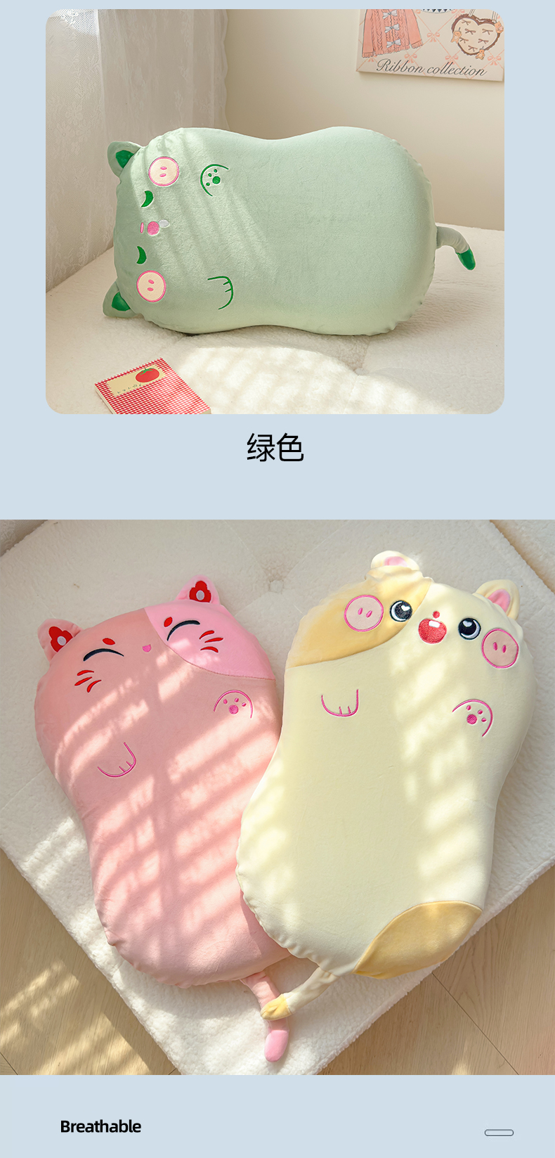 (总)诺可 2025新款丹麦绒贴布绣手提小猫抱枕被,小猫-黄,小猫-粉,小猫-灰,小猫-蓝,小猫-绿,组合图