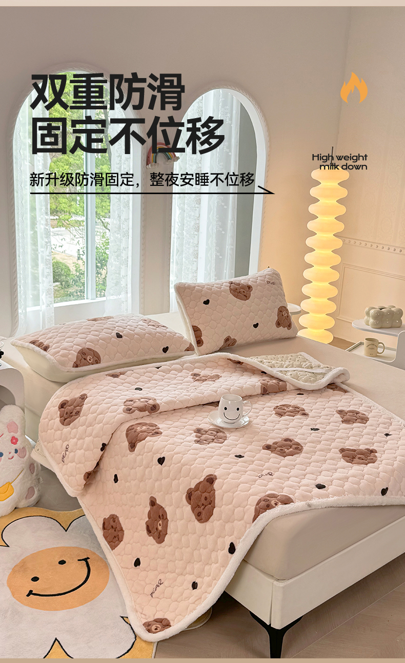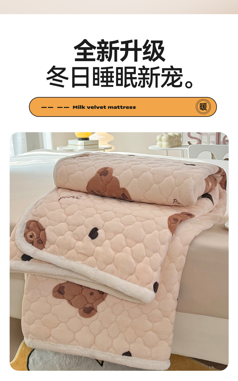 床垫/床褥 > 暖芯优选 2025热款外贸跨境电商热销款冬季加厚牛奶绒印花床垫床垫学生单人宿舍上下铺 梦梦熊