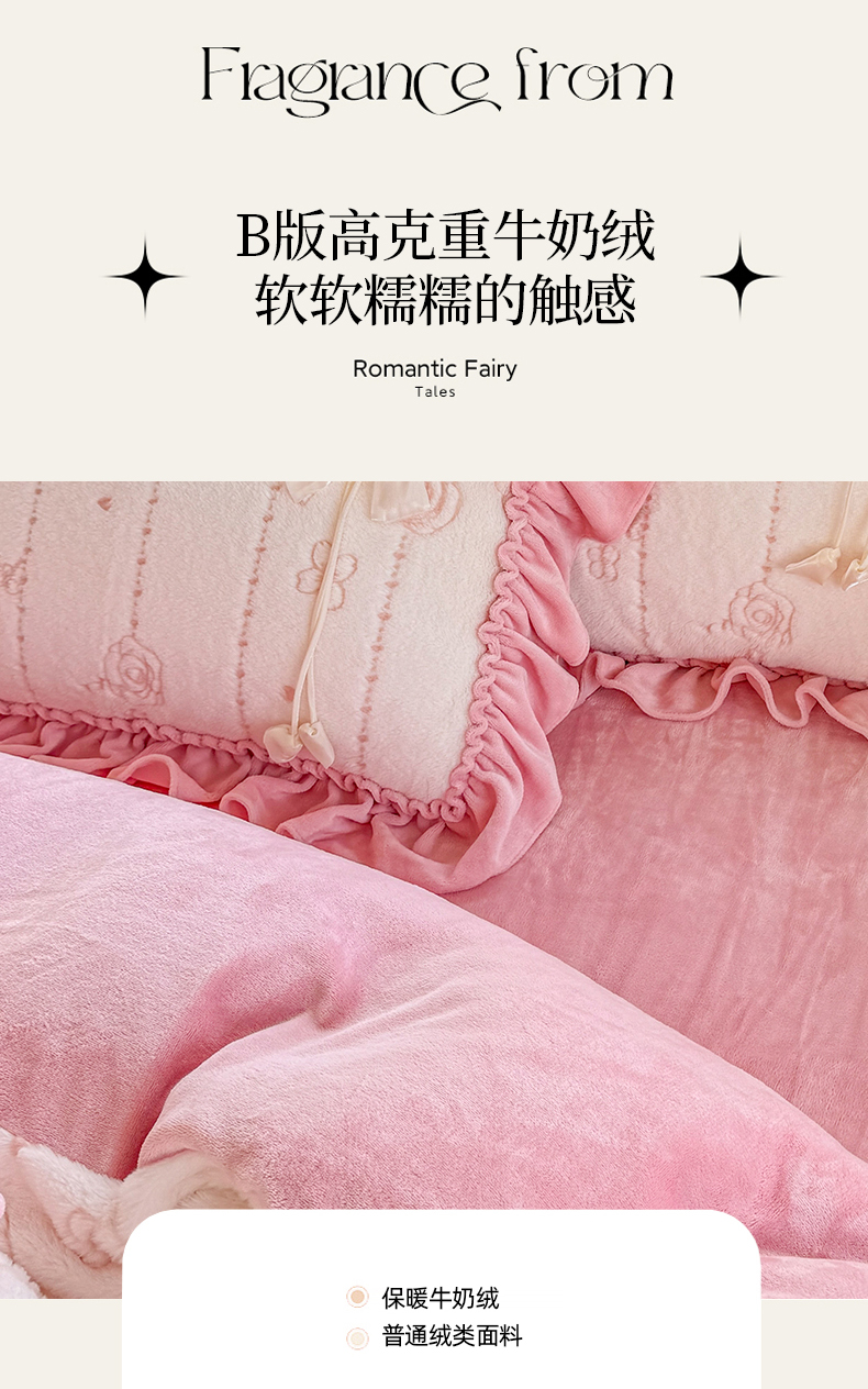 (总)【苏东来】2025高端加厚保暖纯色甜美公主赫本风法式工艺款雕花牛奶绒四件套清新少女婴儿法莱兔绒四件套,蝶恋花,繁花,花香,玫瑰花,一枝花,华尔兹粉,华尔兹卡其,华尔兹水绿,华尔兹天蓝,山茶花,蝴蝶花,梦蝶,如意结,飞舞少女,满天星粉,满天星卡其,满天星水绿