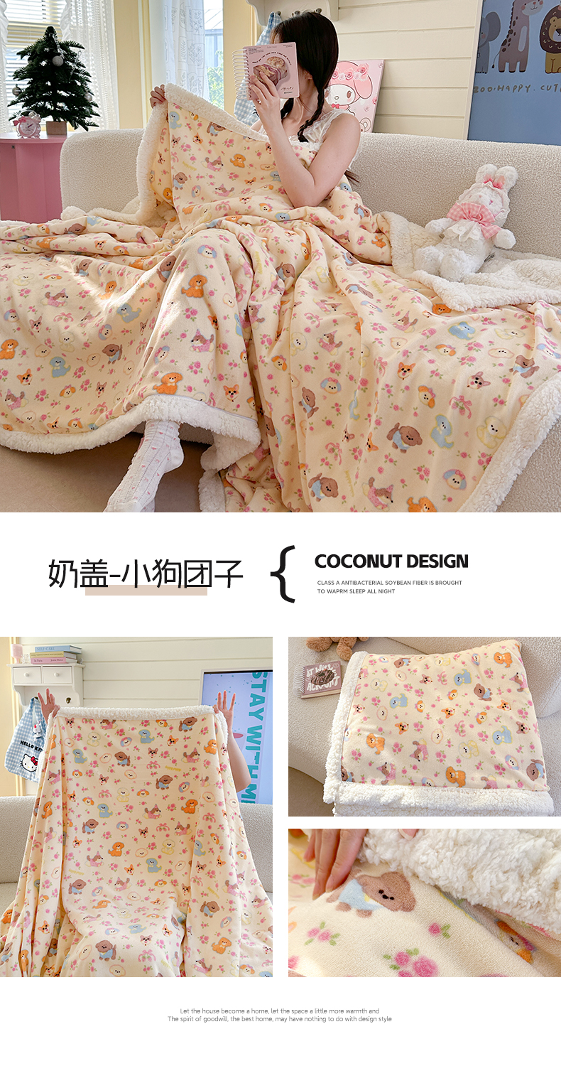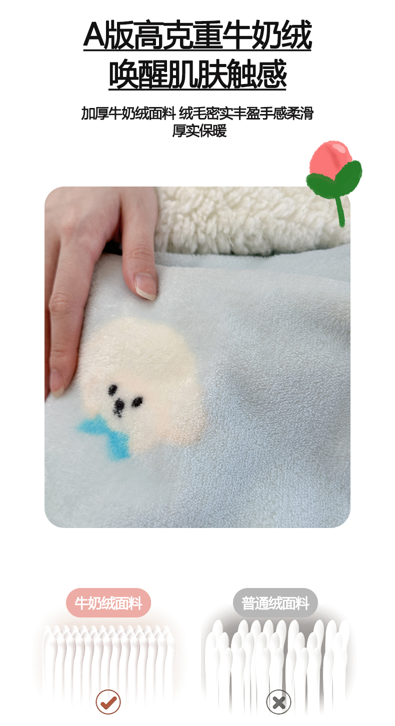 商品名称:Mata蔓塔家 2025新款A类秋冬可爱系牛奶绒羊羔绒多功能毛毯奶盖系列 奶盖-小兔胡萝卜