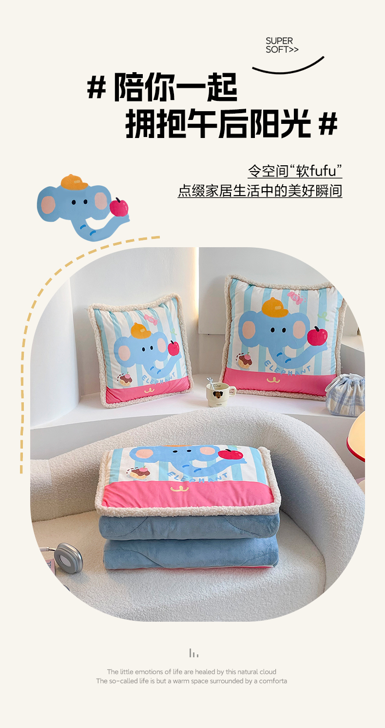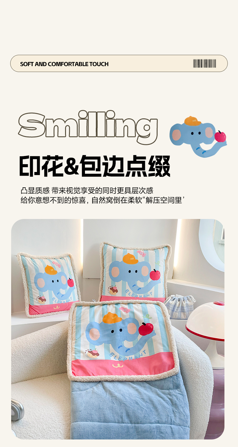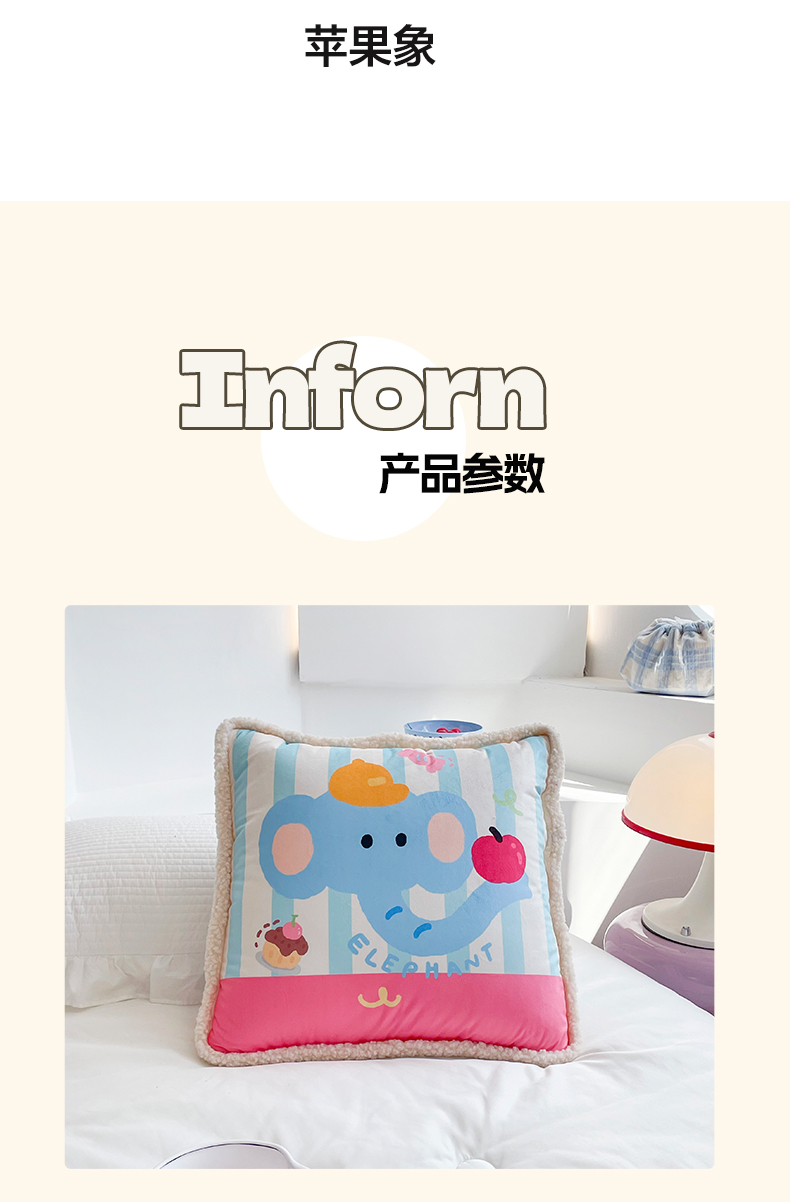 番茄+ 2025新款羊羔毛花边绒抱枕被 苹果象