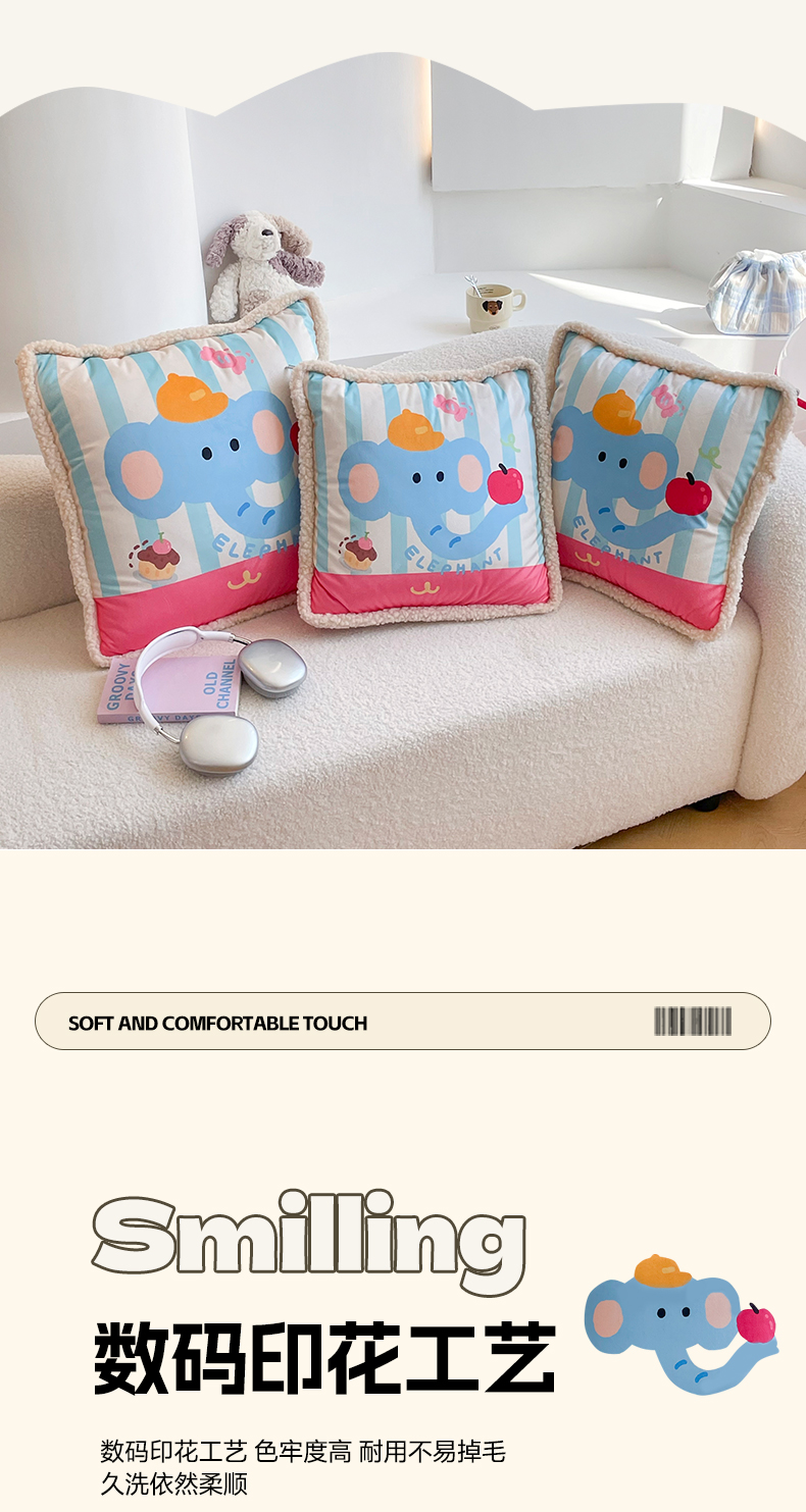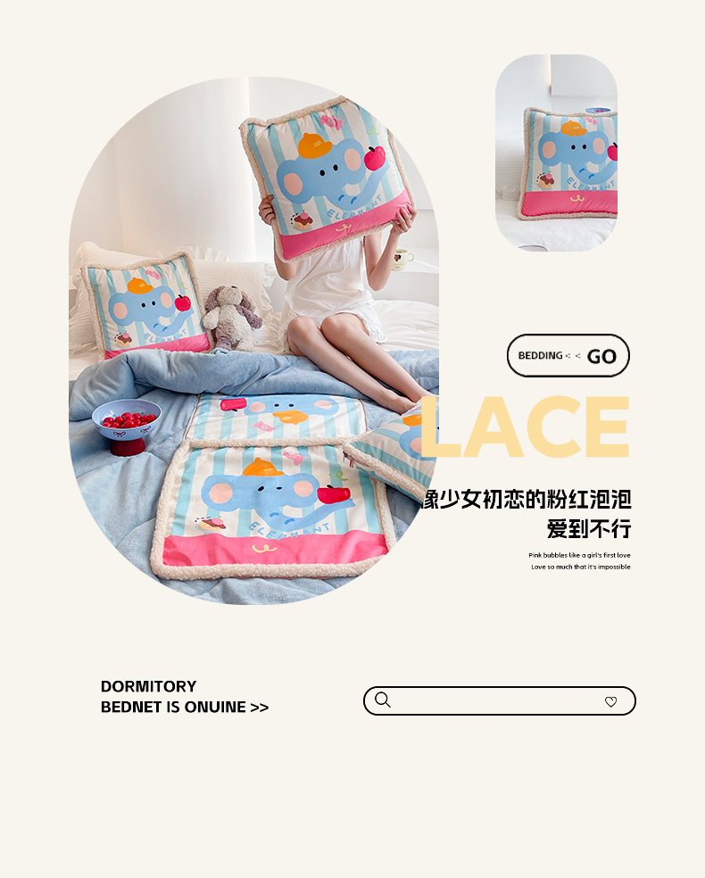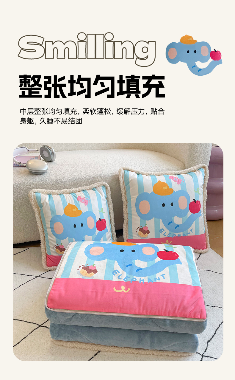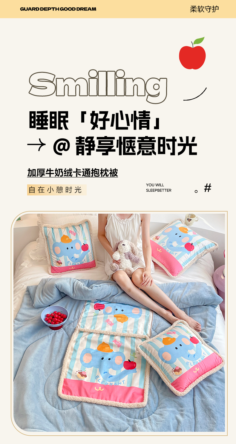 番茄+ 2025新款羊羔毛花边绒抱枕被 苹果象