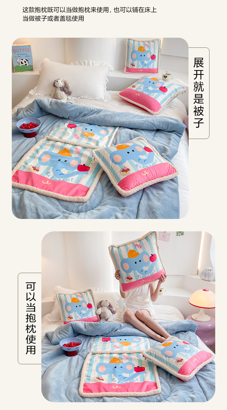 商品名称:番茄+ 2025新款羊羔毛花边绒抱枕被 苹果象