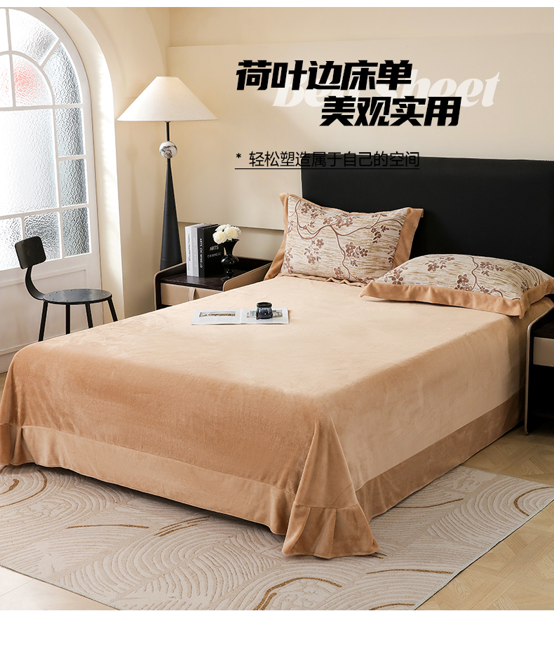 三悦四季 2025新款200克加厚牛奶绒剪花床笠跨境直播爆款 奶咖,奶咖