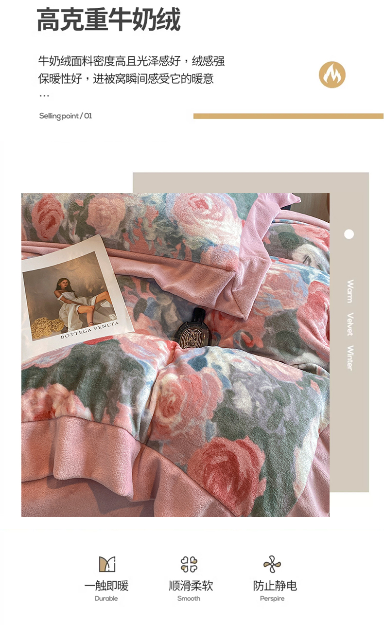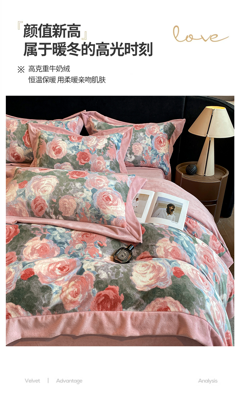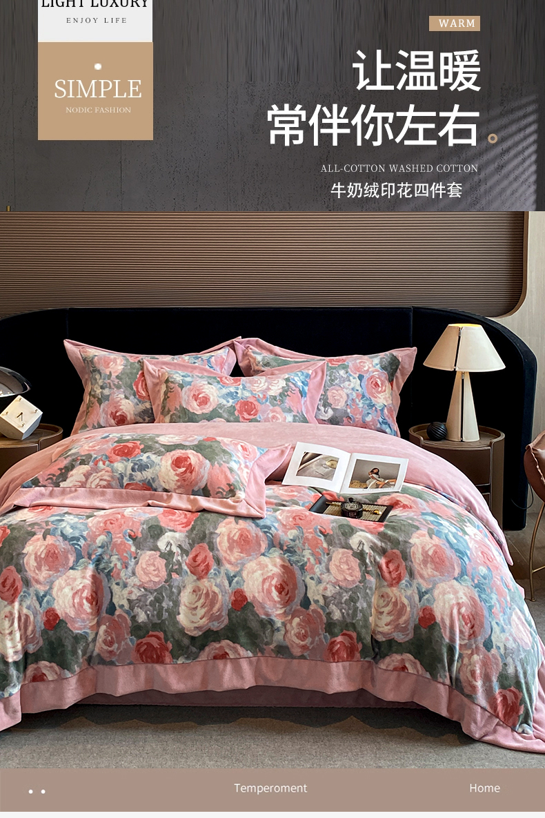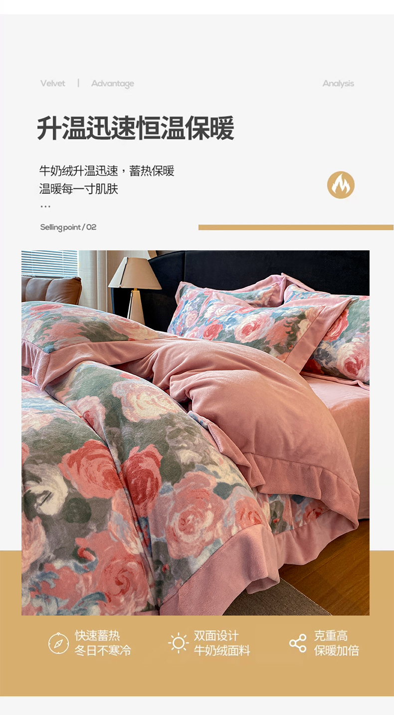 花漾家居 2024新款宽边牛奶绒四件套 秋日恋曲,秋日恋曲