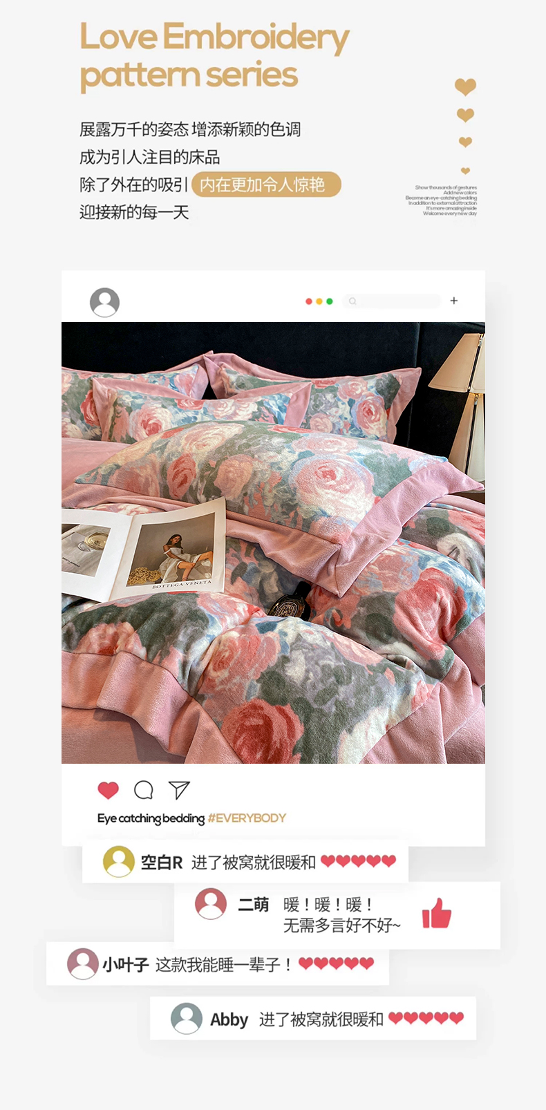(总)花漾 2024秋冬新款雕花牛奶绒珍珠工艺款四件套,爱情海-咖,几何绿,丘比特-粉,小香咖,幸运花-咖