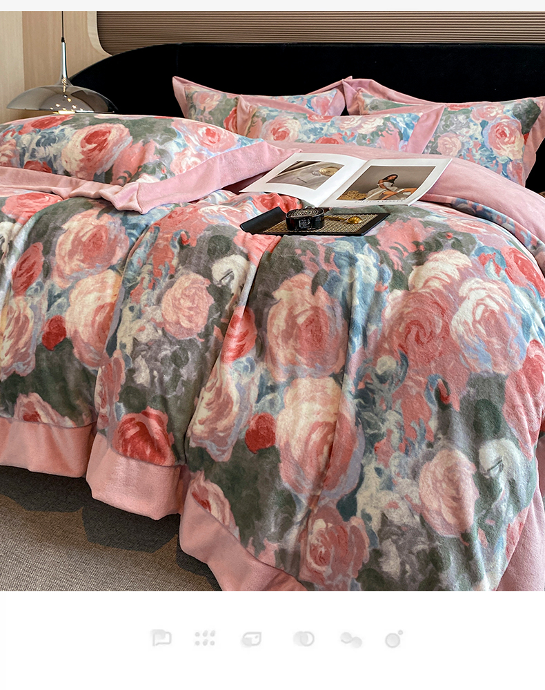 花漾 2024新款欧式轻奢压线牛奶绒四件套 薇薇,薇薇