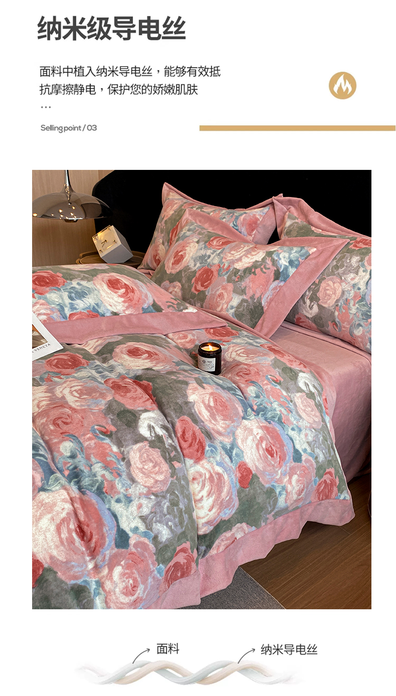 花漾 2024新款欧式轻奢压线牛奶绒四件套 凯瑟琳,凯瑟琳