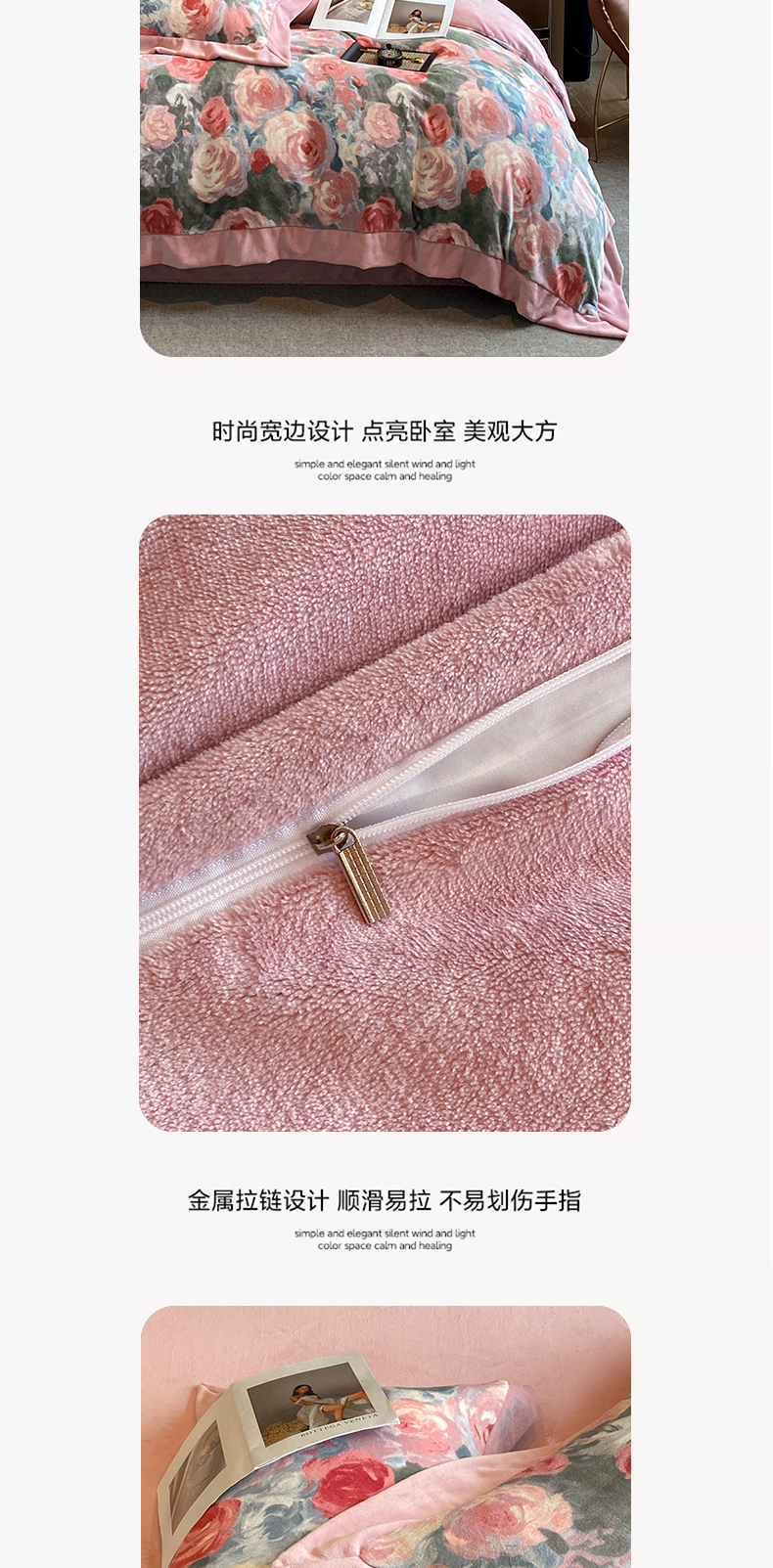 花漾 2024新款欧式轻奢压线牛奶绒四件套 舞动字母粉,舞动字母粉