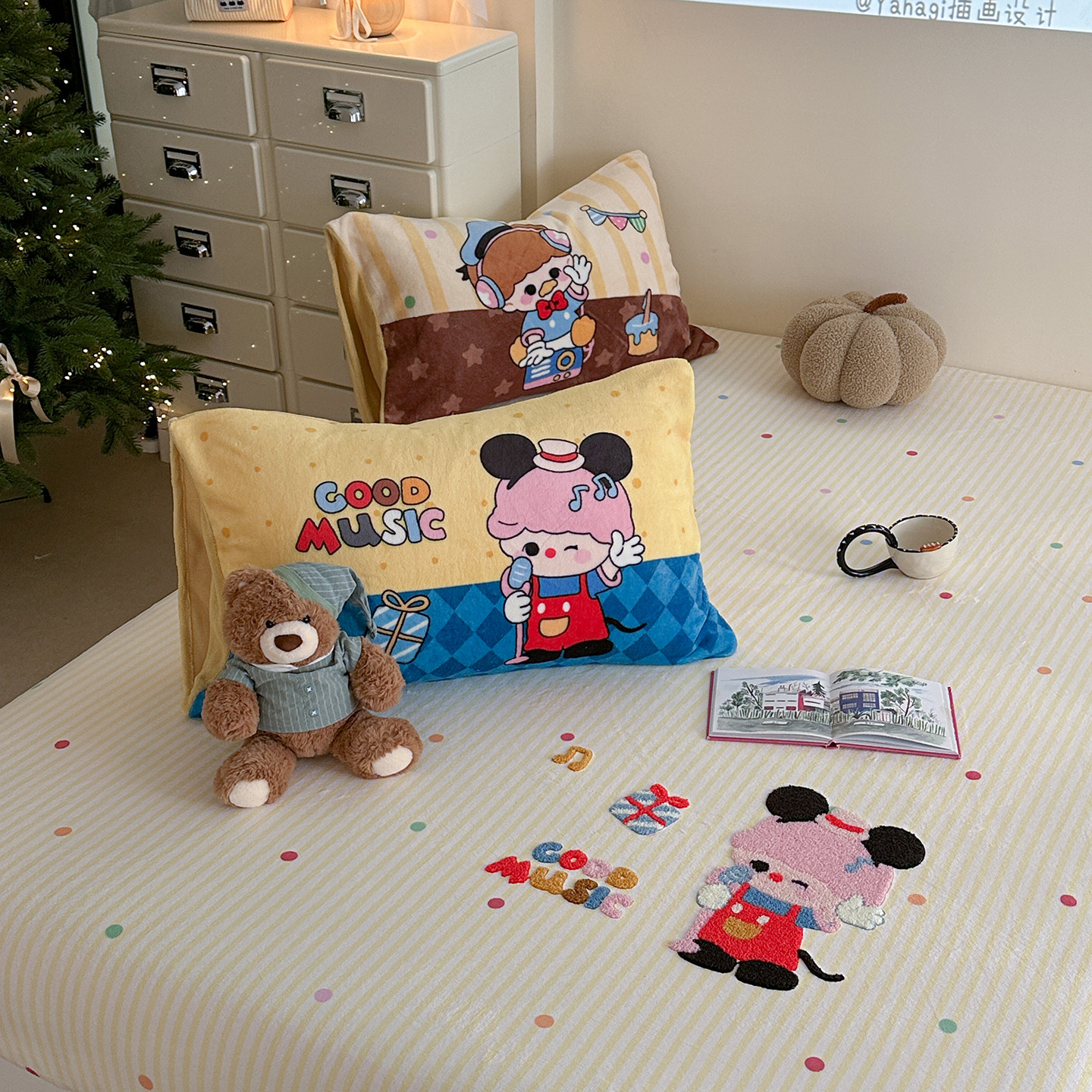 (总)柚子YOUTH 2025新款全棉纯棉工艺款13070贴布绣四件套,爱心小象,毛绒小狗,蘑菇女孩,星星法师