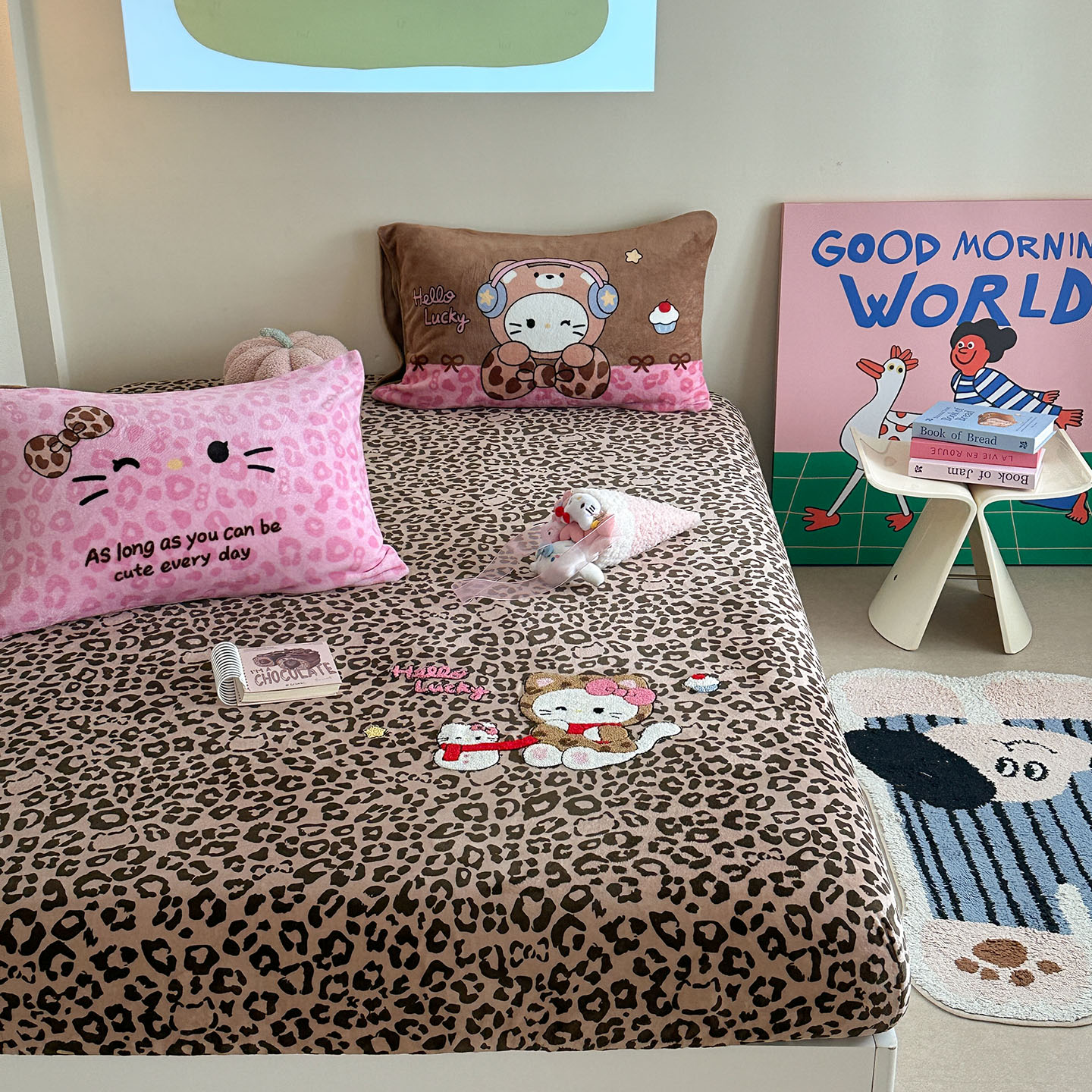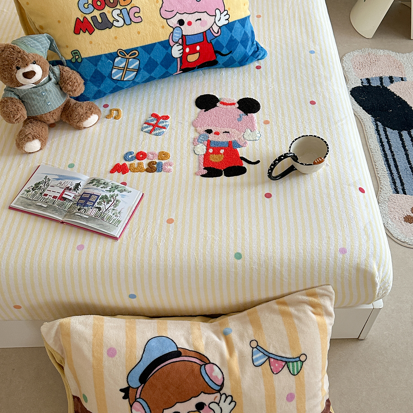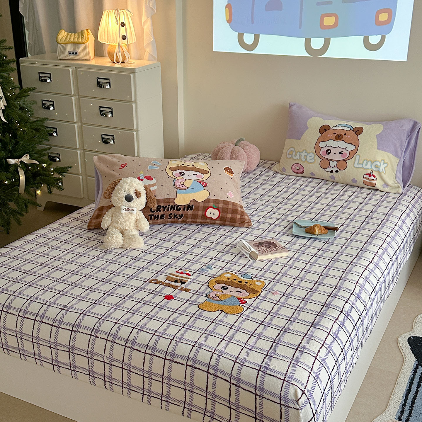 柚子YOUTH 2025新款加厚牛奶绒卡通毛巾绣床笠三件套 萌粒