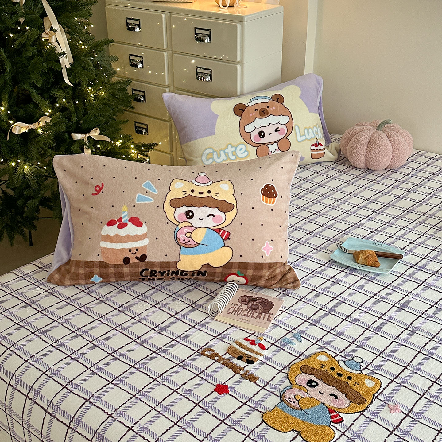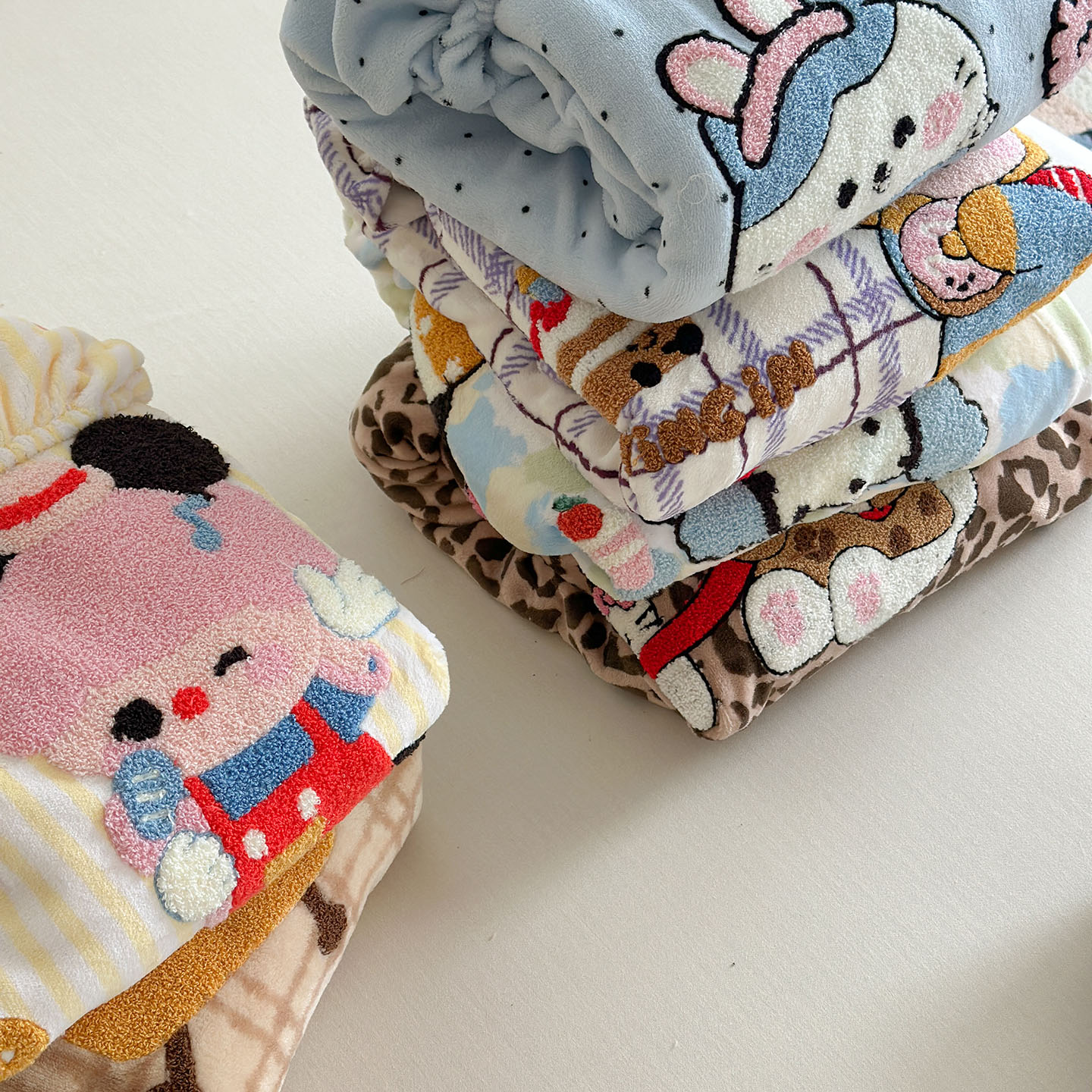 (总)柚子YOUTH 2025新款双面泰迪绒毛巾绣四件套,甜甜圈,快乐企鹅,森林聚会,甜酷KT,小茄子,雪人王国