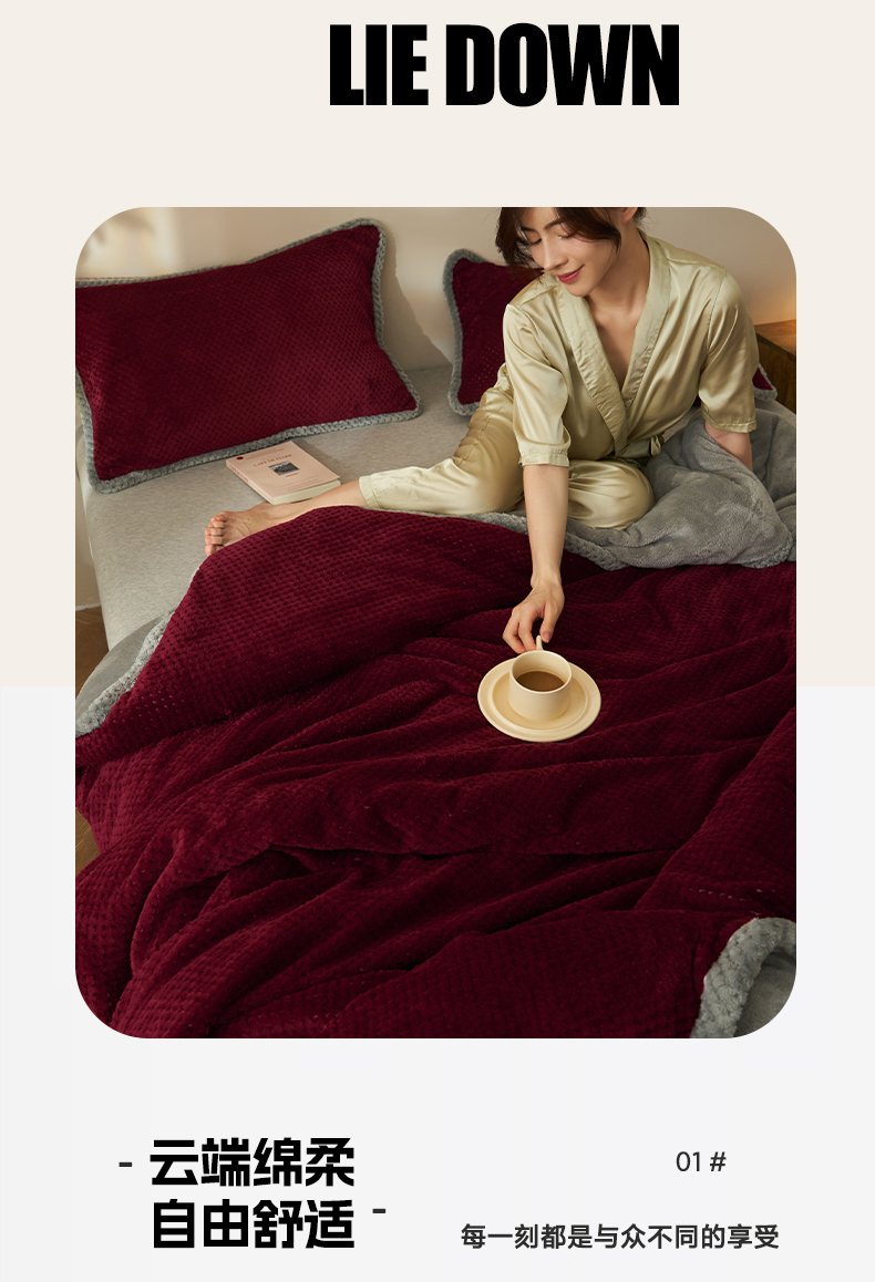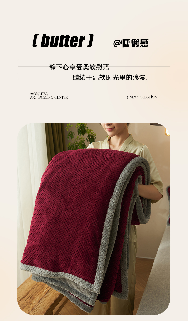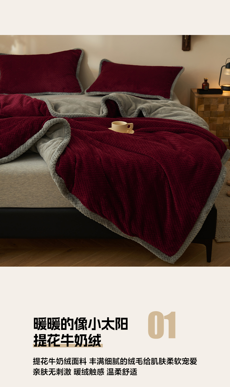 当前位置: 91家纺网 > 商品网购 > 毛毯休闲毯绒毯 > 毛毯 > 早晨家纺 2025新款尚流款-提花双层毛毯【拉链款】 尚流-酒红