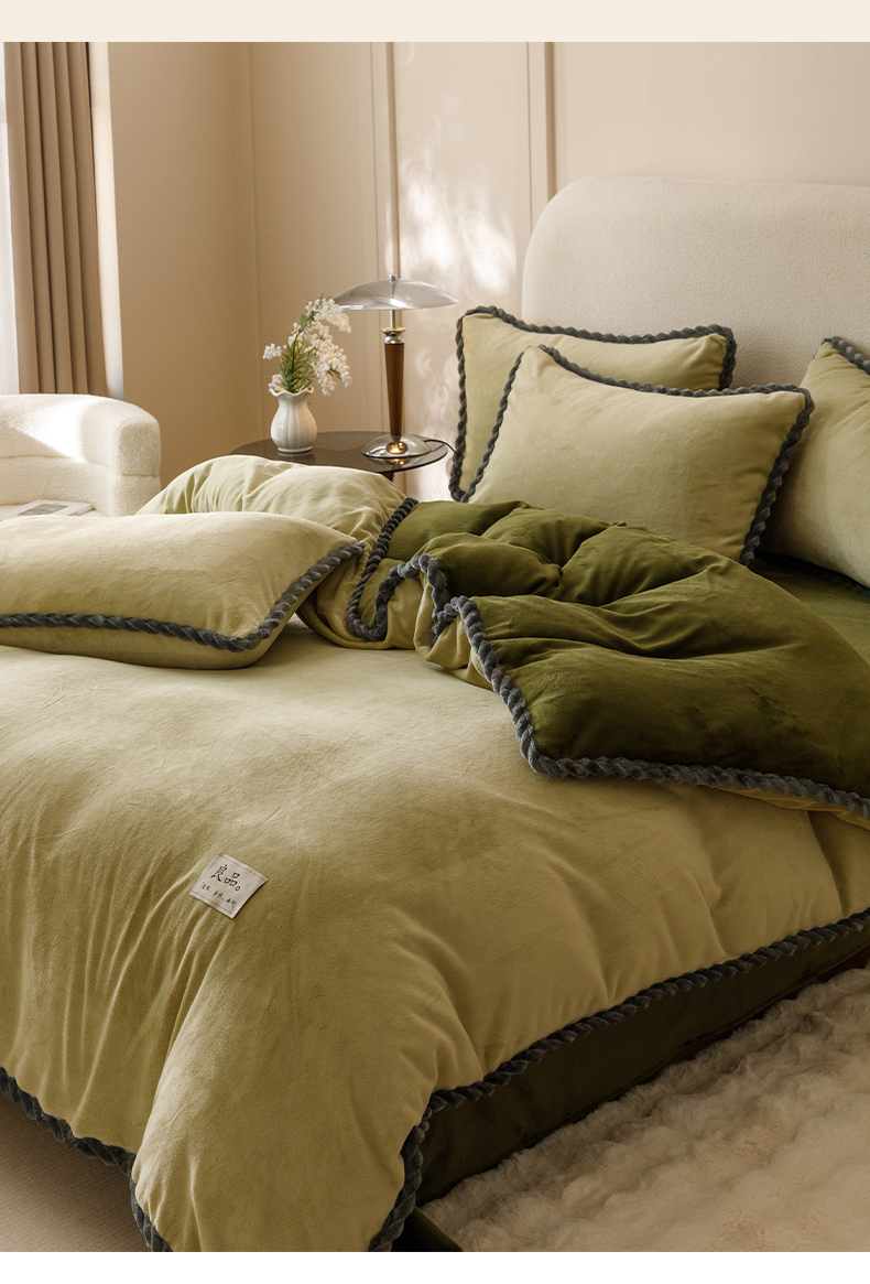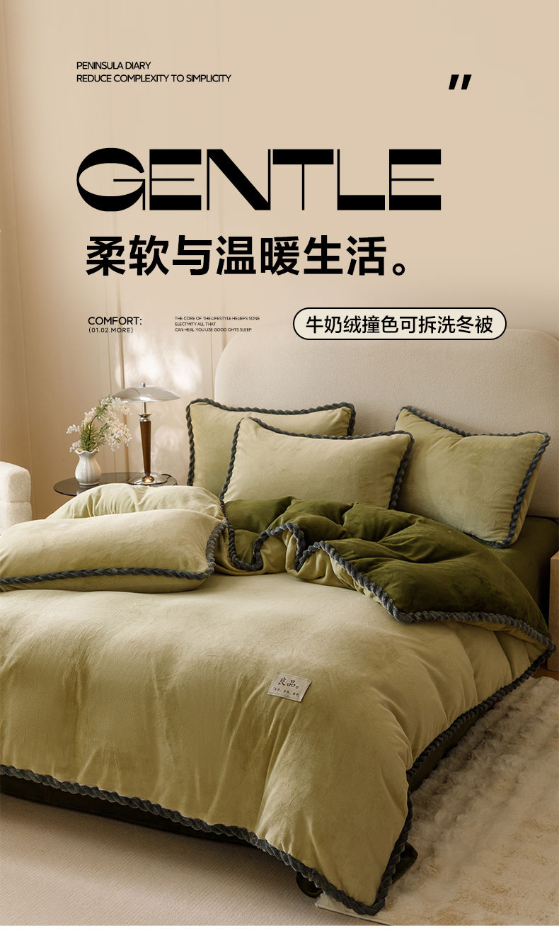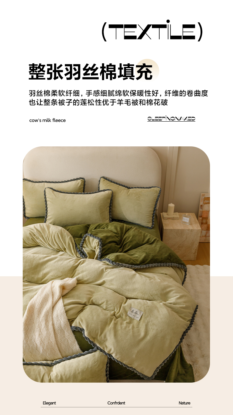 早晨家纺 2025新款纯色双拼牛奶绒-可拆卸冬被 双拼浅水绿+橄榄绿