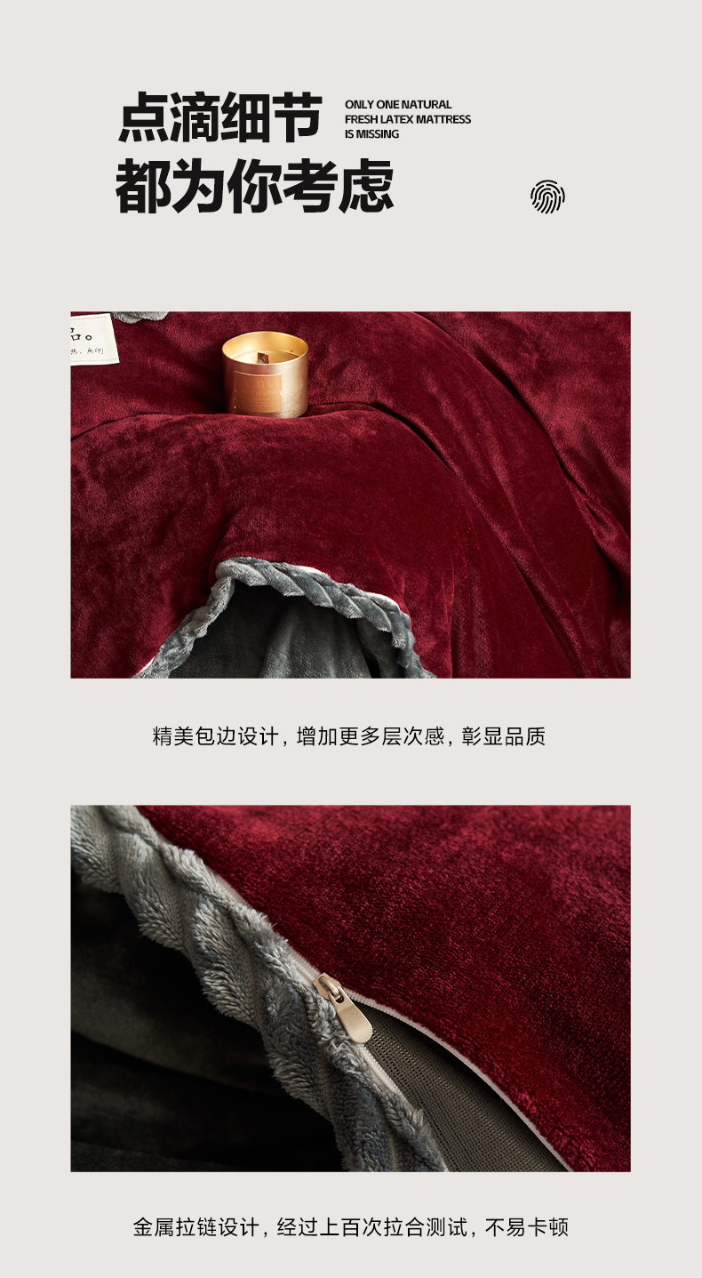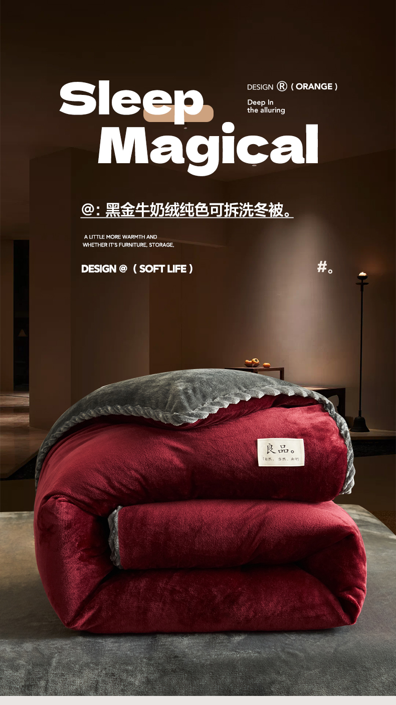 • 91家纺网 家纺一手货源 找家纺 早晨家纺 2025新款黑金牛奶绒纯色可拆洗冬被风格1 黑金-酒红