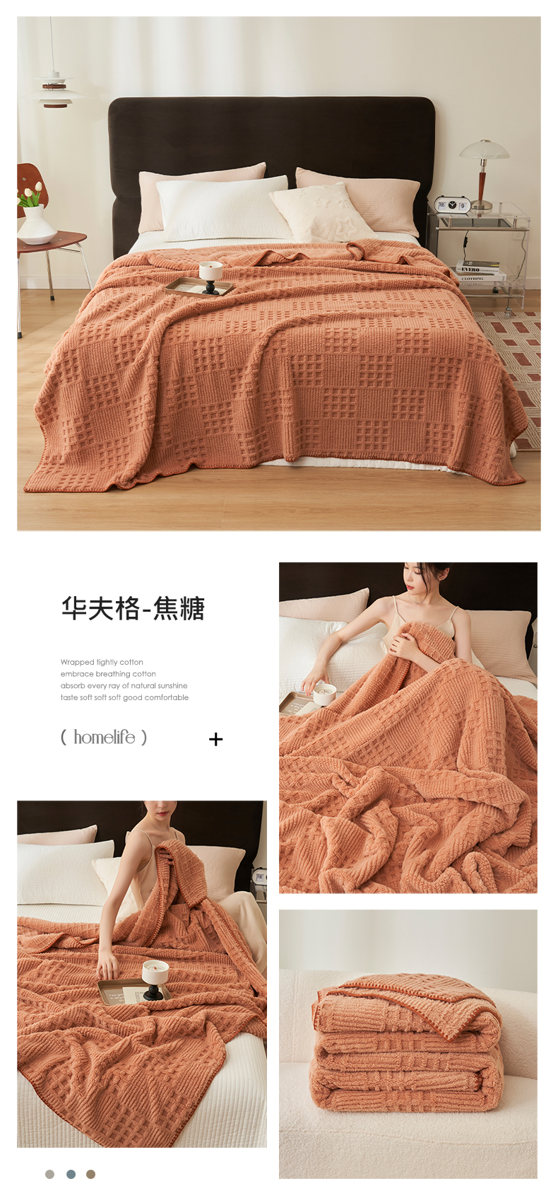 早晨家纺 2025新款华夫格款-提花单层毛毯 华夫格-银灰