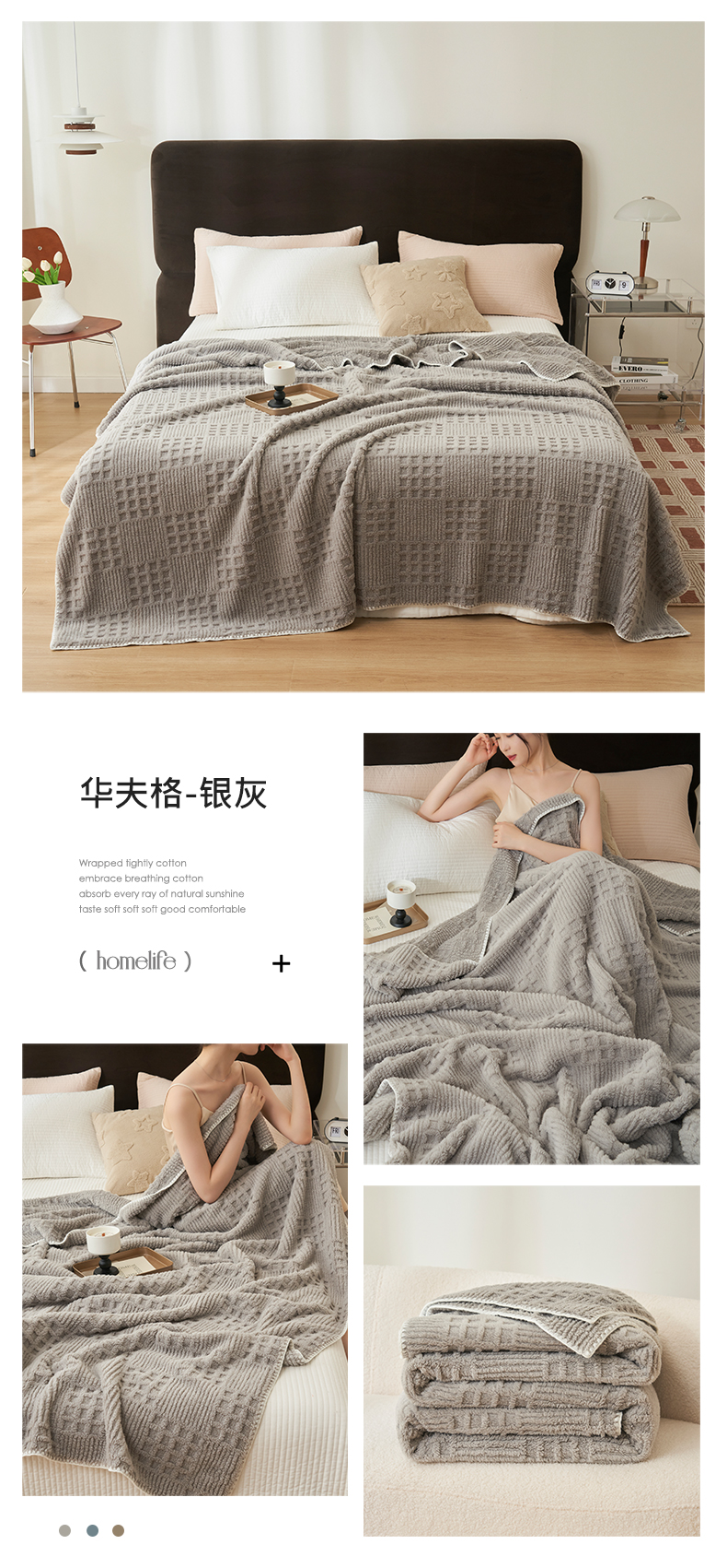 商品名称:早晨家纺 2025新款华夫格款-提花单层毛毯 华夫格-银灰