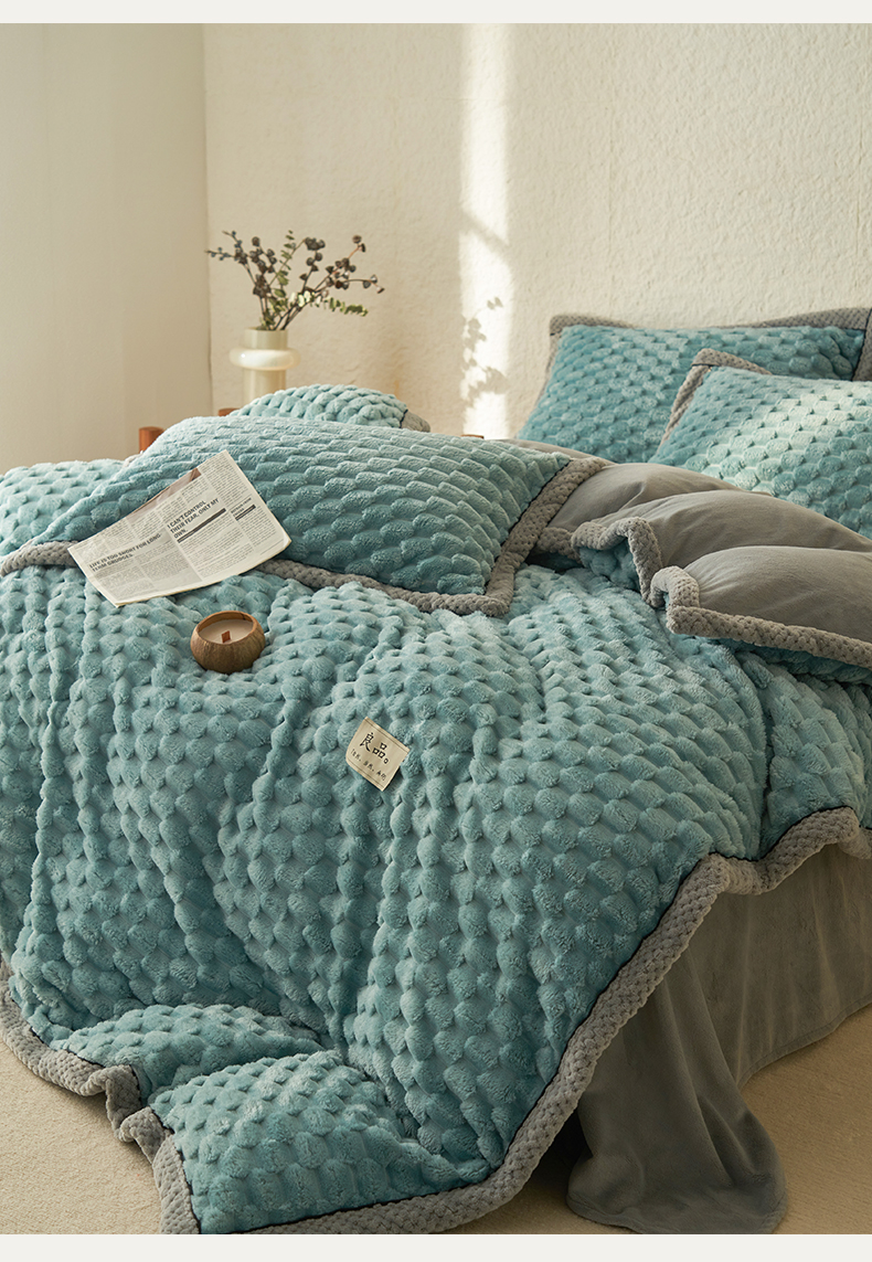 • 91家纺网 家纺一手货源 找家纺 早晨家纺 2025新款金贵款兔毛绒提花-单被套 金贵-宾利蓝
