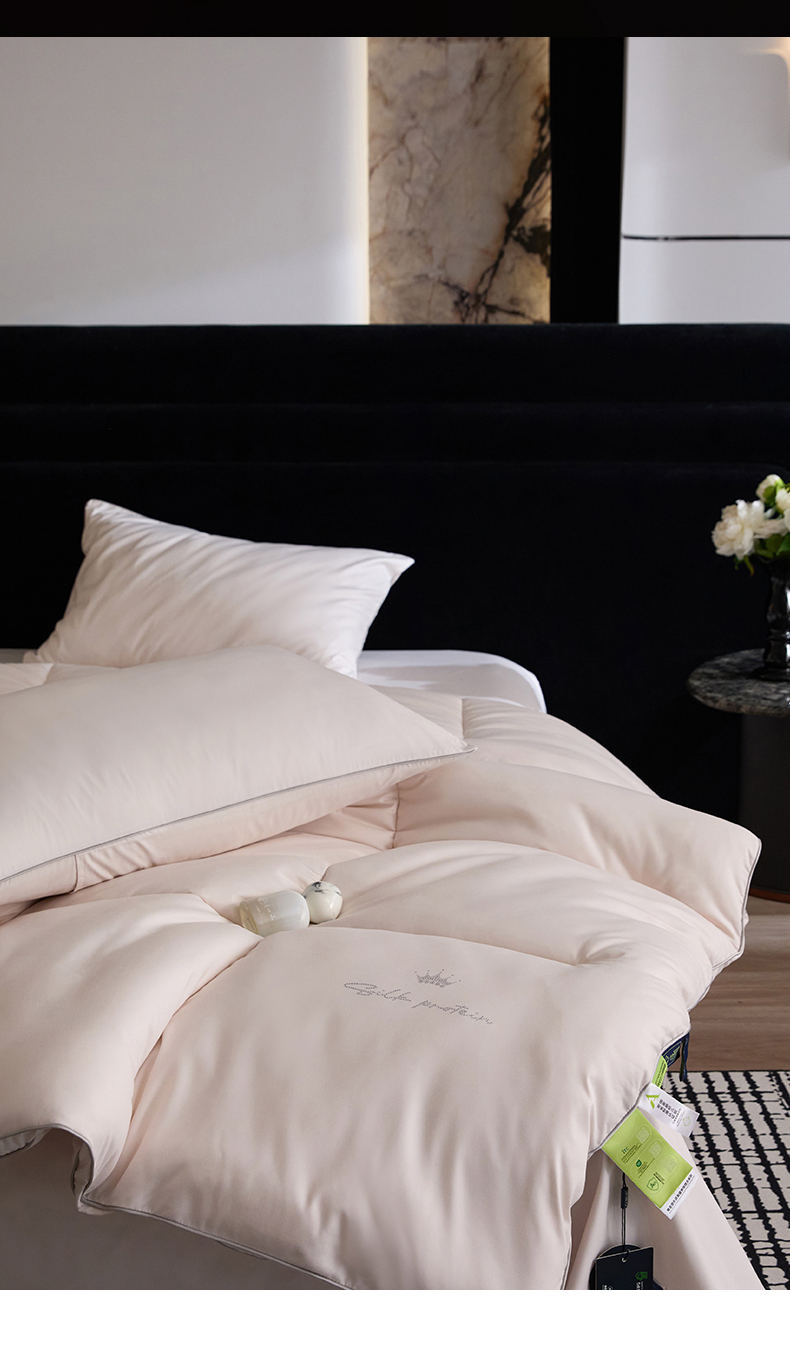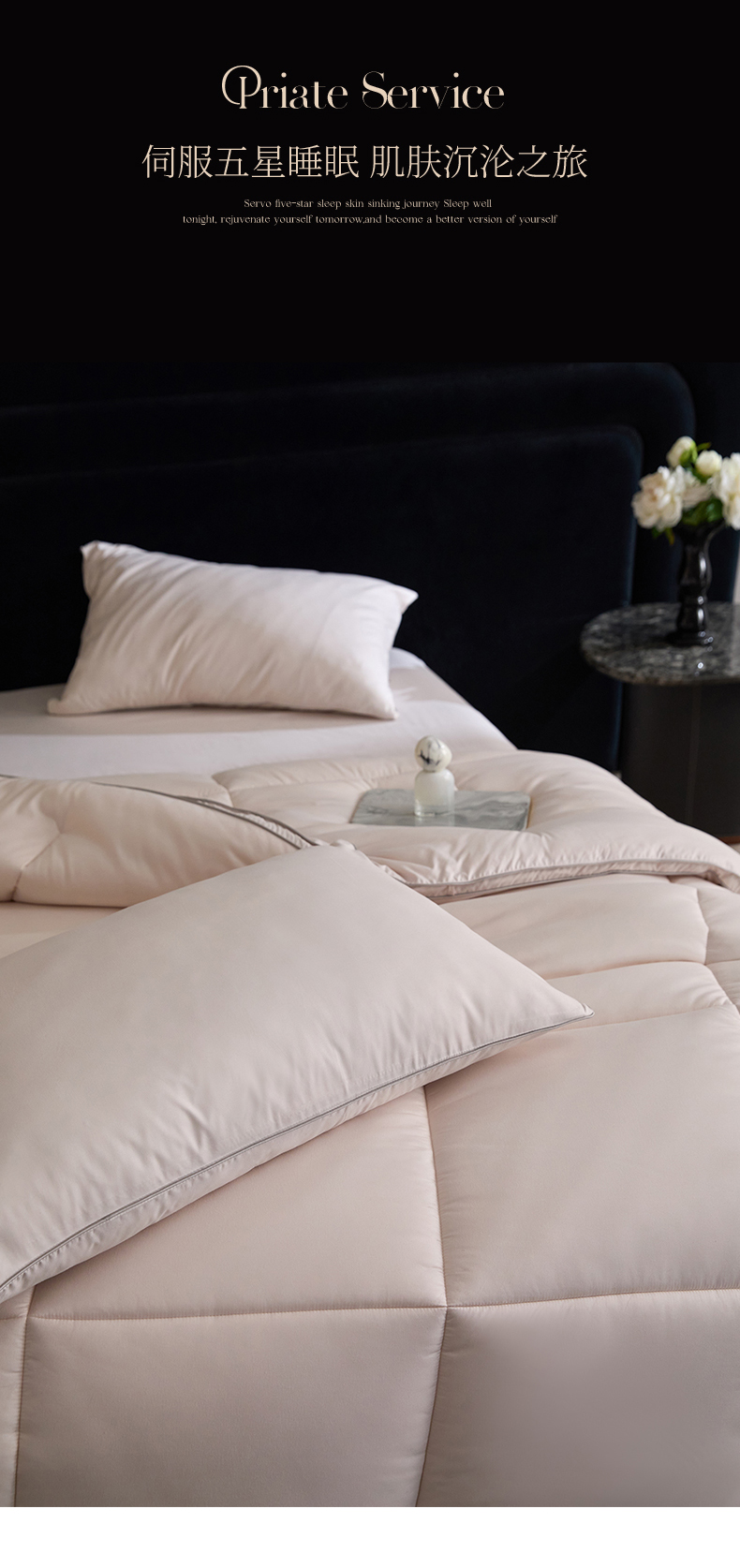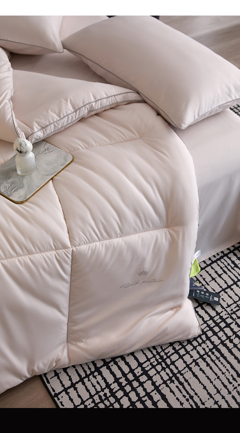 • 91家纺网 家纺一手货源 找家纺 (总)头等舱 2025新款天棉缎大提花55莱赛尔大豆7A抗菌秋冬被(模特图),卡布丽娜,慕斯,配包装