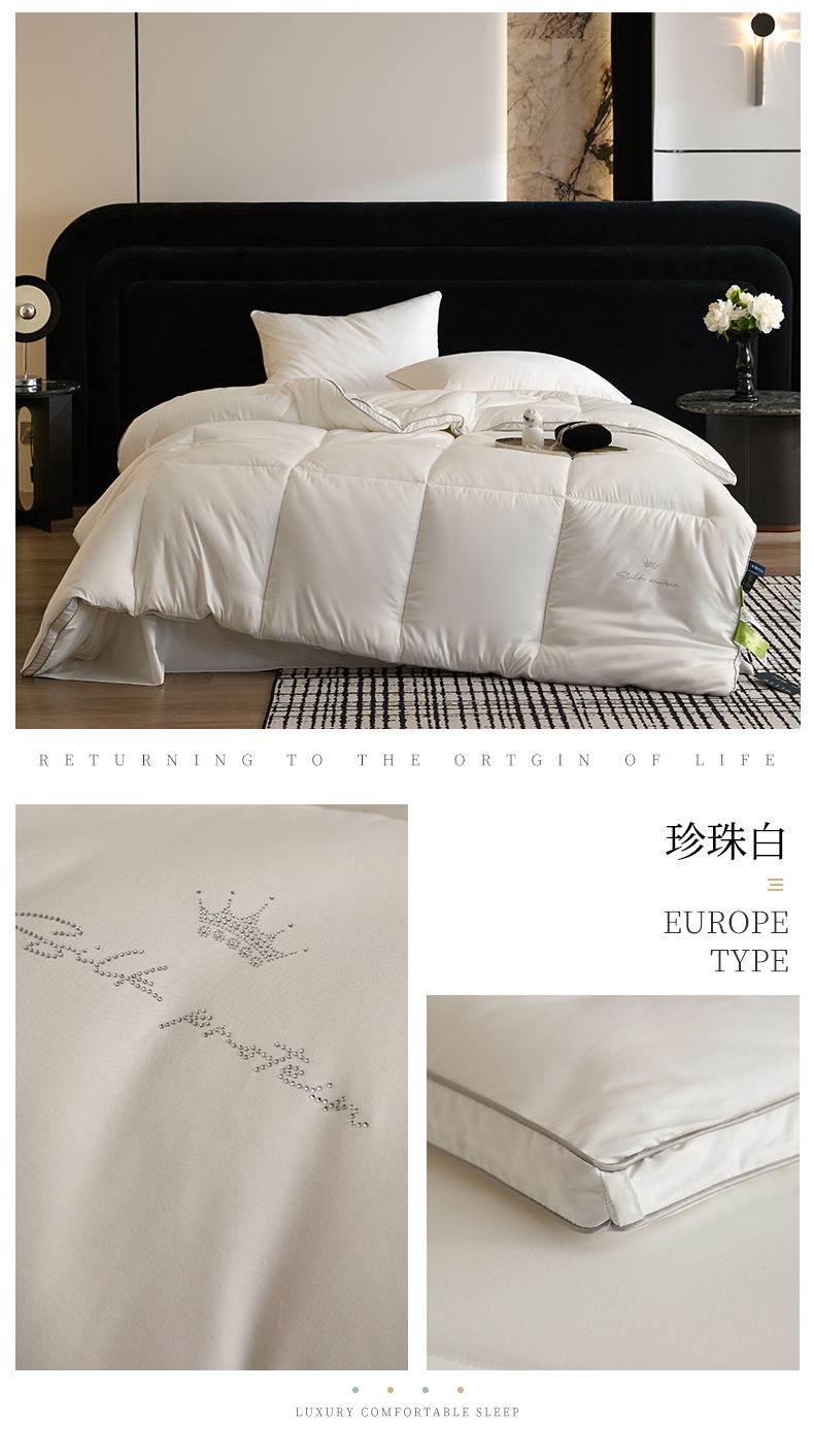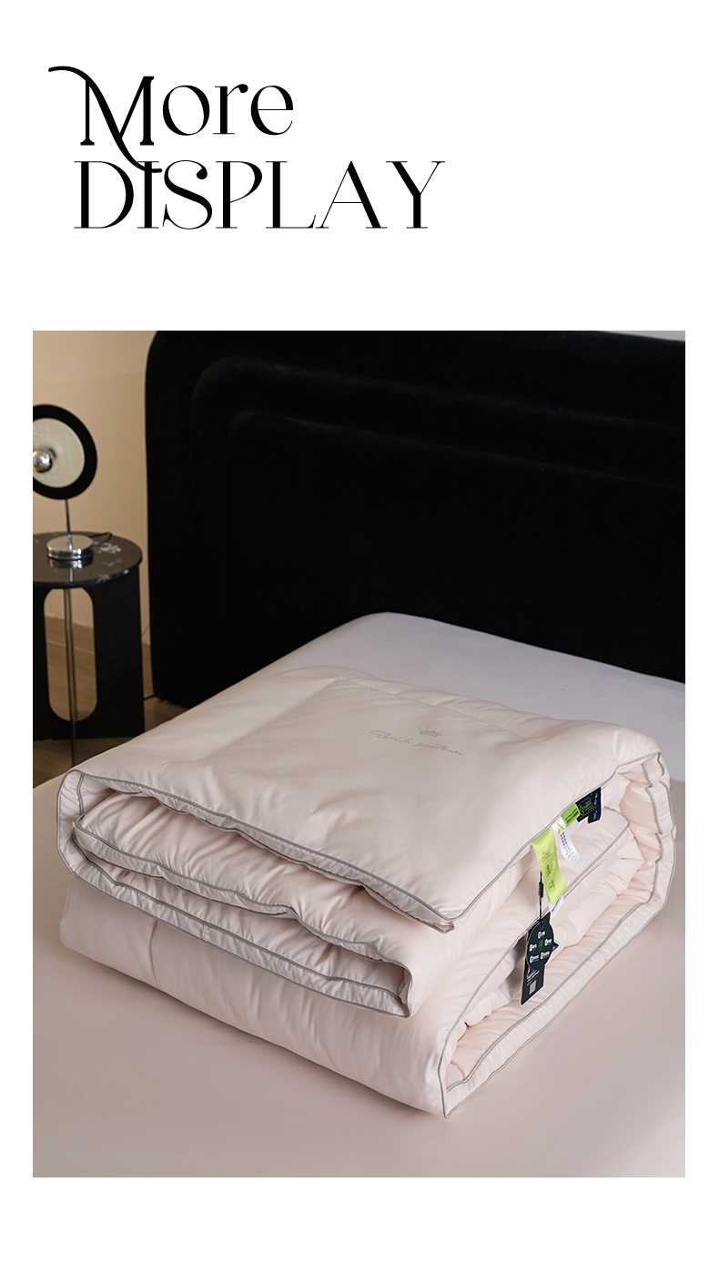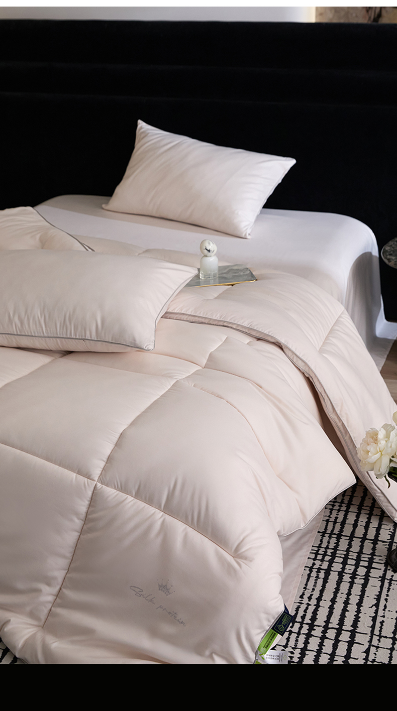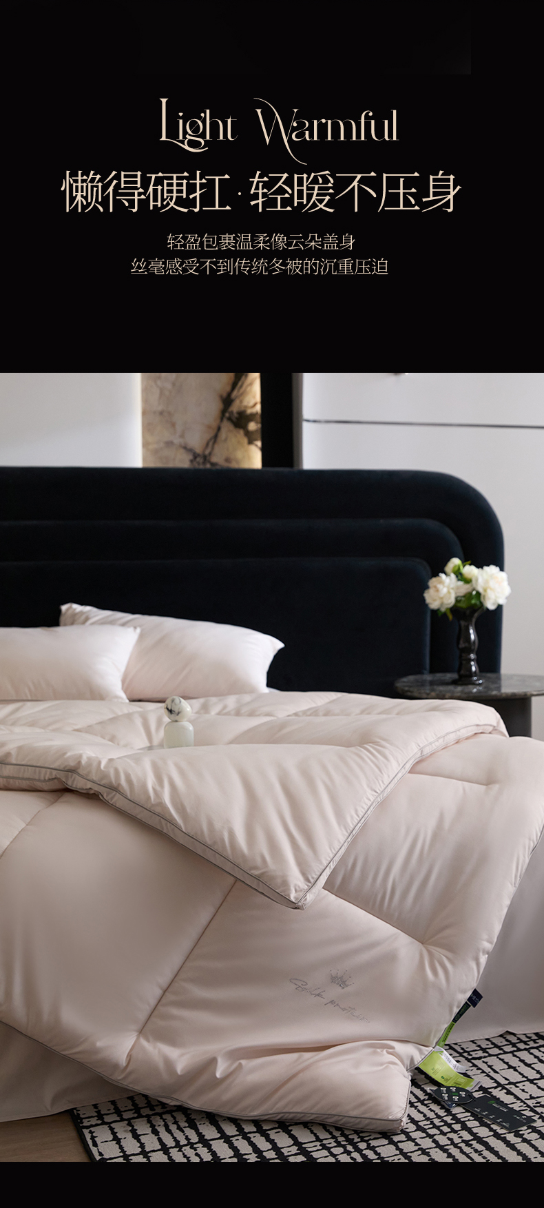 • 91家纺网 家纺一手货源 找家纺 (总)头等舱 2025新款天棉缎大提花55莱赛尔大豆7A抗菌秋冬被(模特图),卡布丽娜,慕斯,配包装