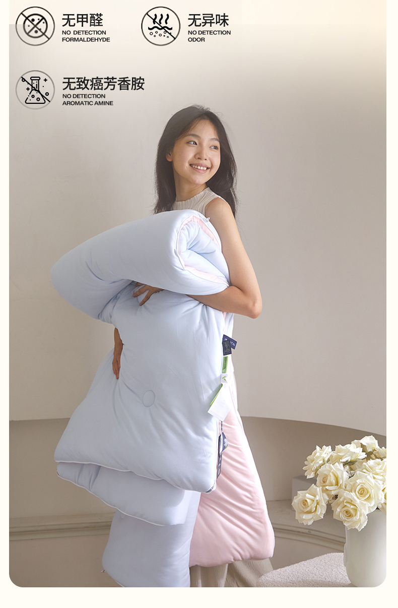 当前位置: 91家纺网 > 商品网购 > 被子 > 冬被 > 头等舱 2025新款针织A类软糯净植力抗菌防螨防霉低致敏双拼秋冬被(模特图) 典雅蓝+粉玉