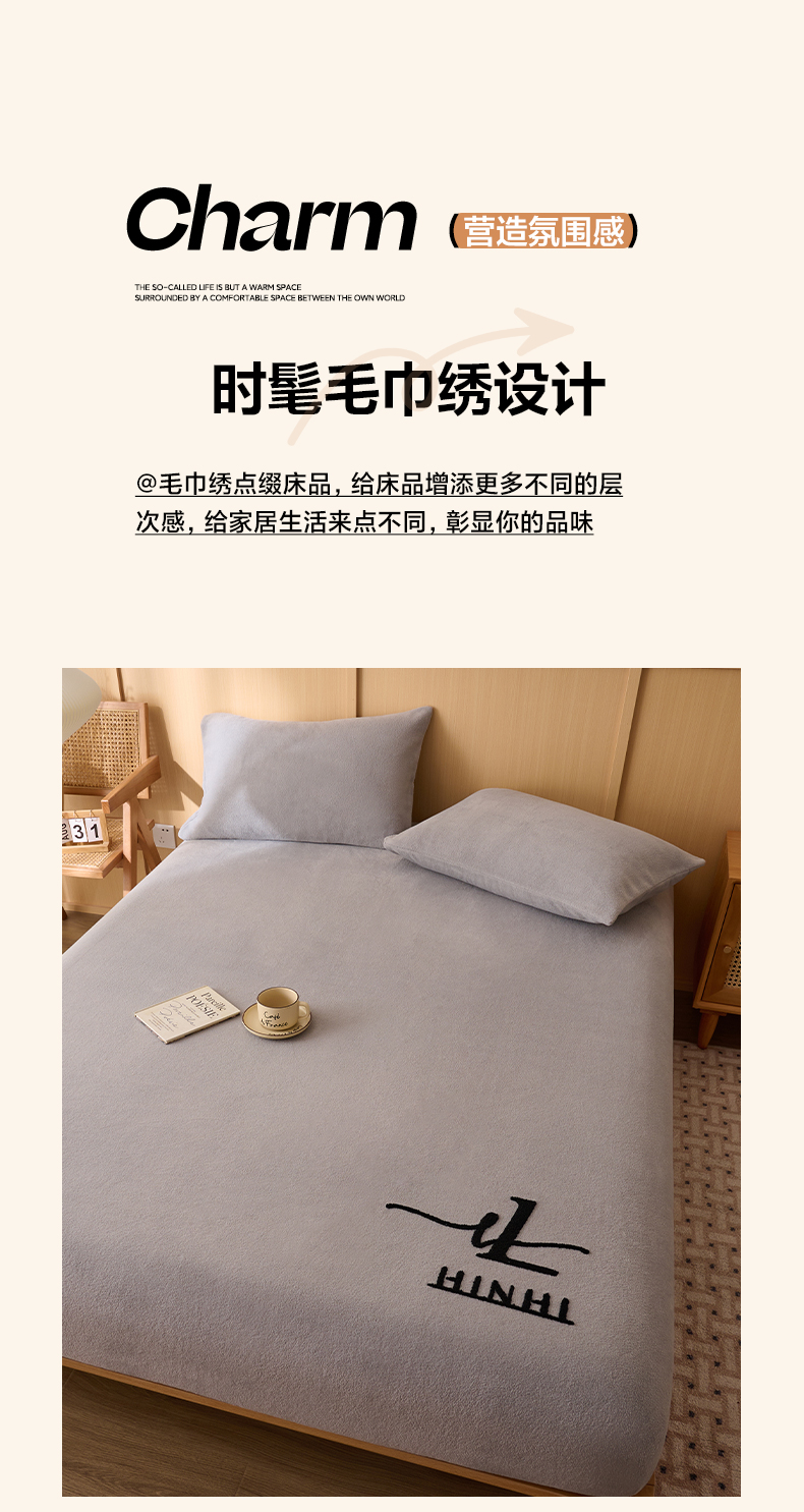 早晨家纺 2025新款华泰款高克重牛奶绒仿羊绒毛巾绣单床笠 华泰-高级咖