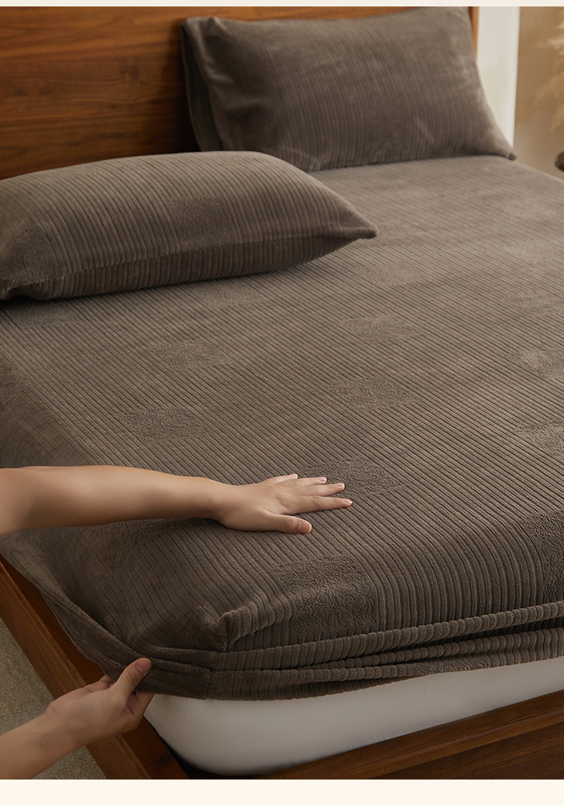 • 91家纺网 家纺一手货源 找家纺 早晨家纺 2025新款红金龙纯色烂花牛奶绒床笠 米澜-奶咖