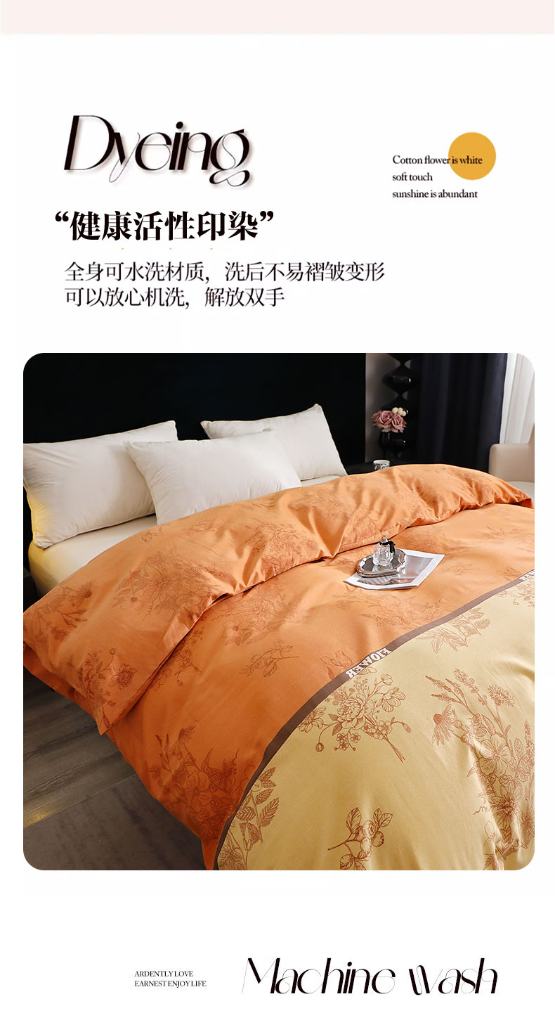 • 91家纺网 家纺一手货源 找家纺 晶缦家纺 2025叶语系·纯棉活性全棉磨毛单被套单品被套被套单件 浪漫味道桔