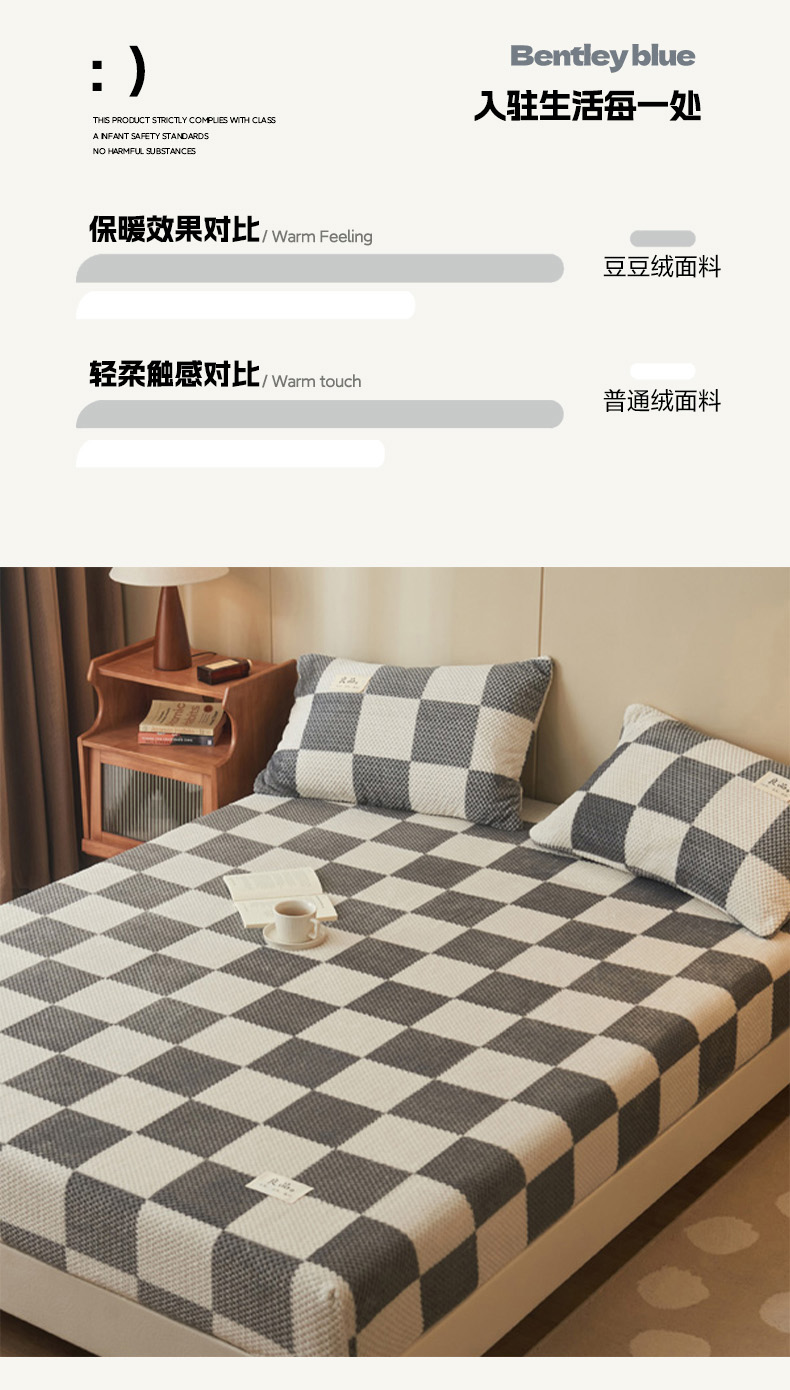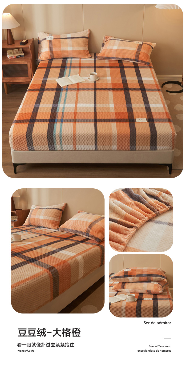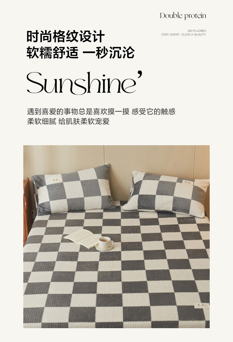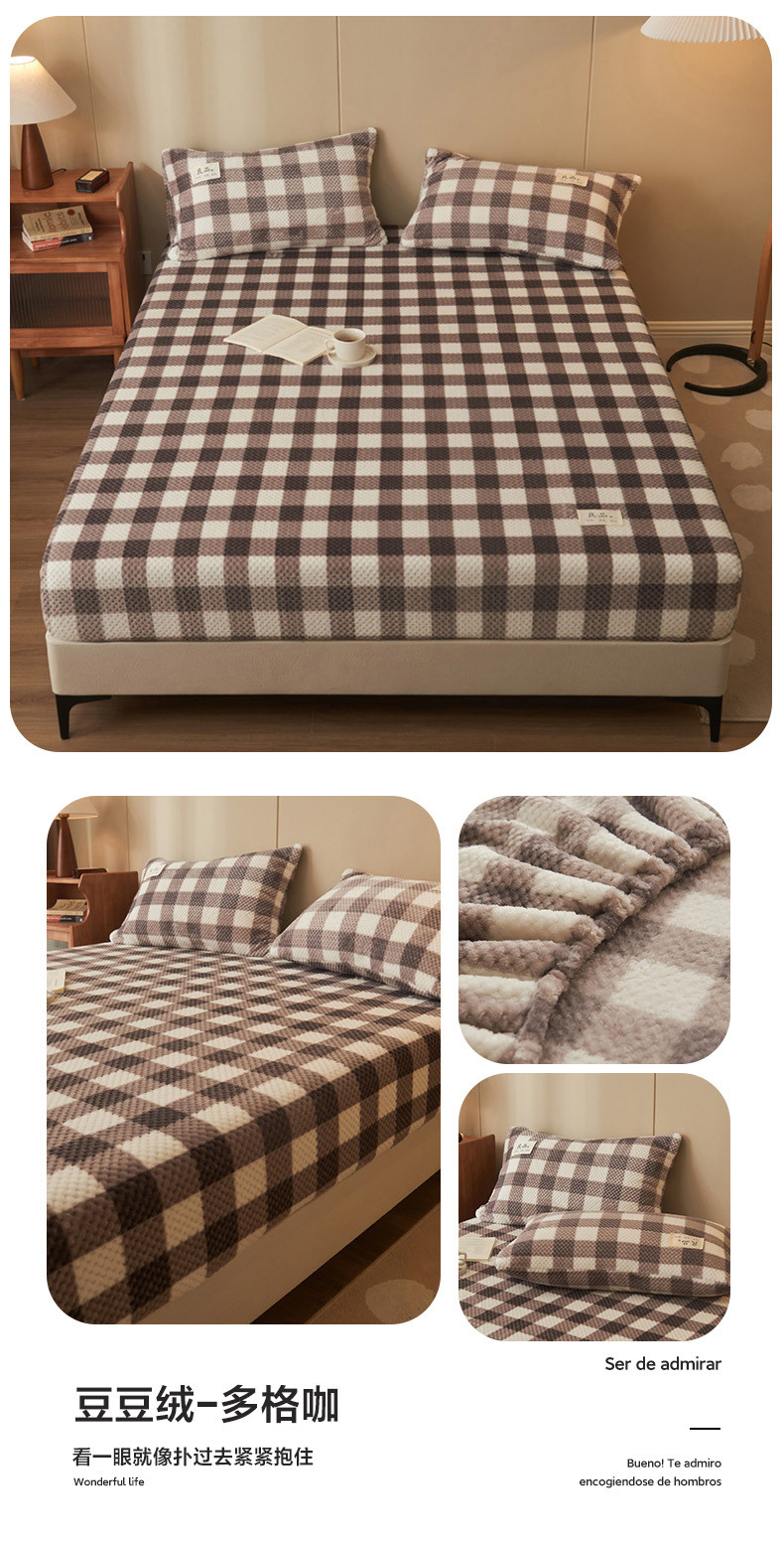 • 91家纺网 家纺一手货源 找家纺 早晨家纺 2025新款豆豆款高克重牛奶绒菠萝格无印风床笠 豆豆绒-小格咖