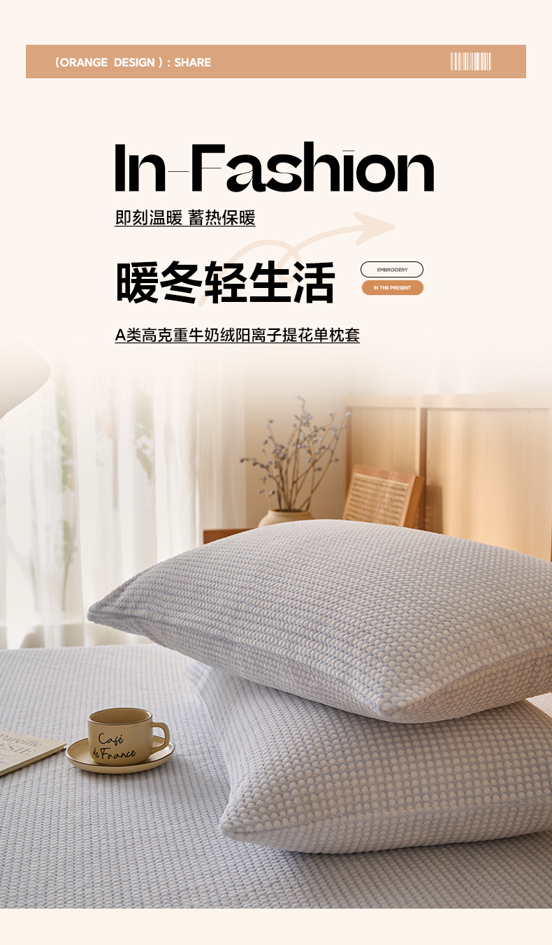 商品名称:早晨家纺 2025新款深蓝款高克重牛奶绒阳离子提花单枕套 深蓝-蓝