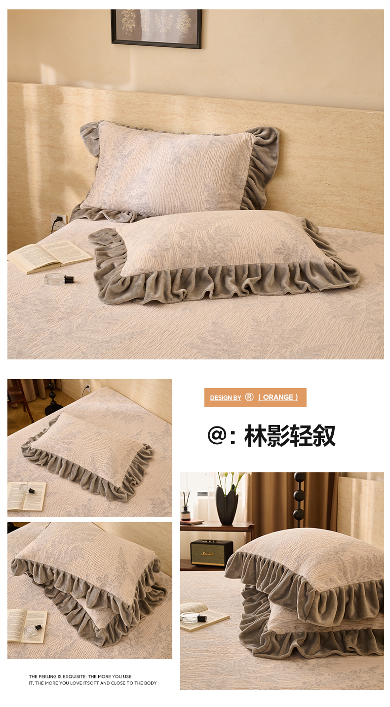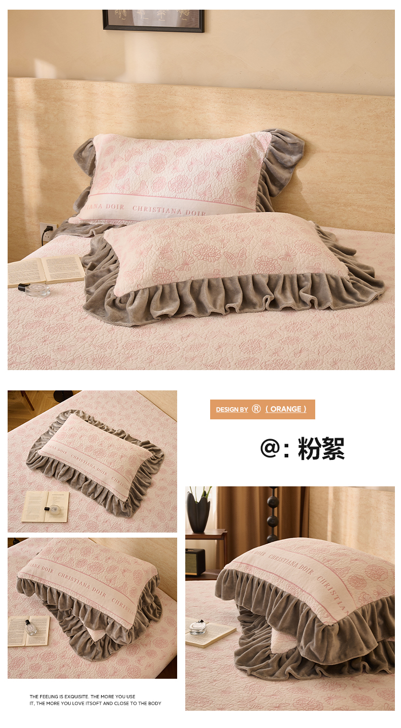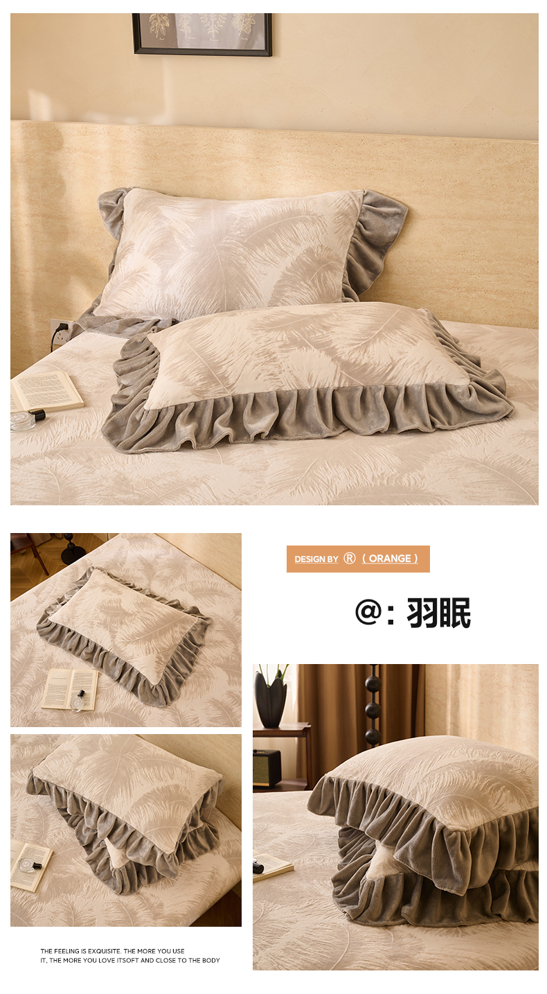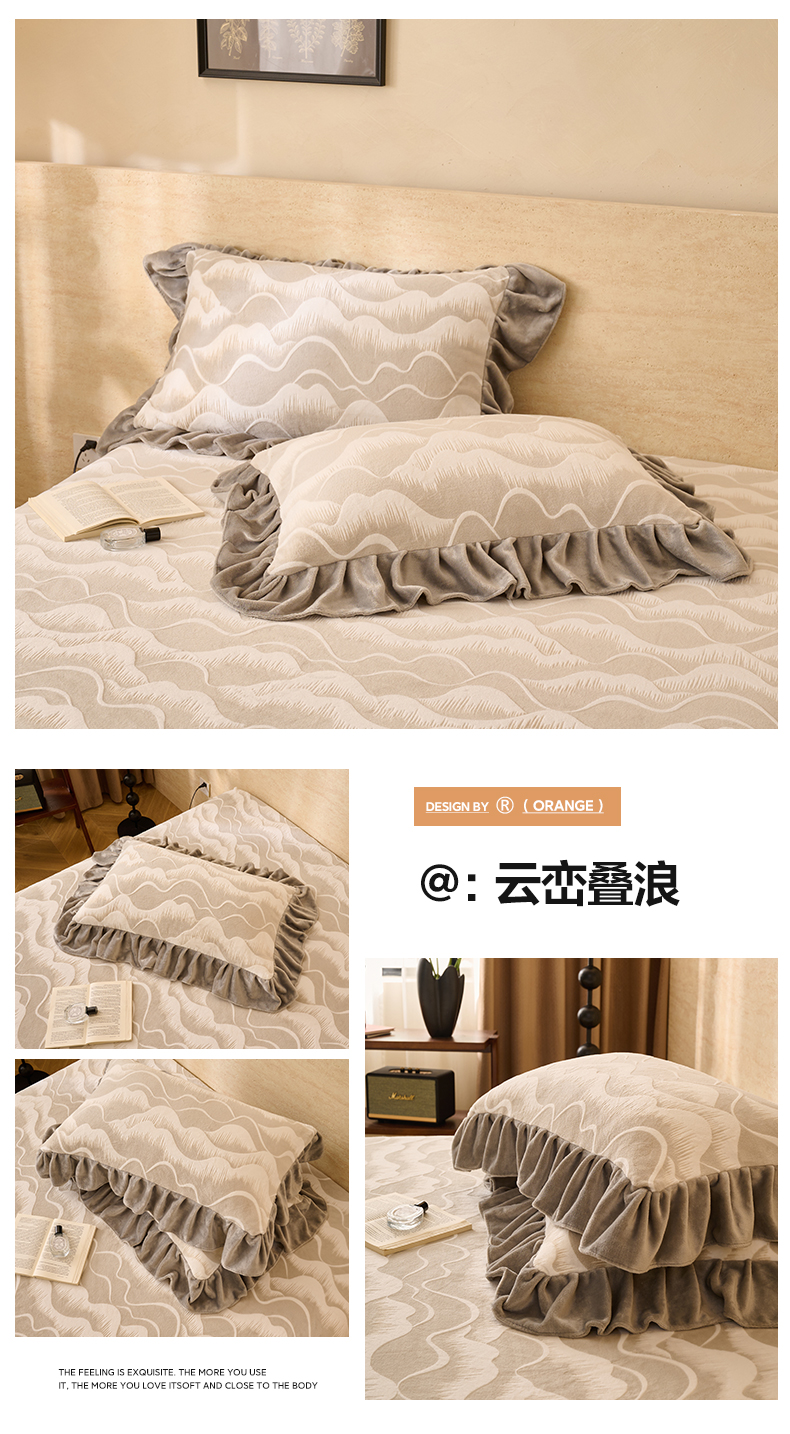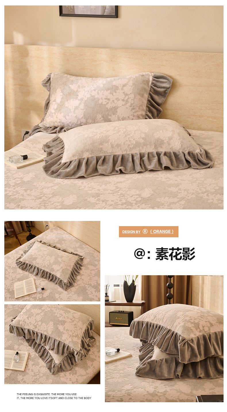 商品名称:早晨家纺 2025新款高克重牛奶绒烂花枕套 浅叙