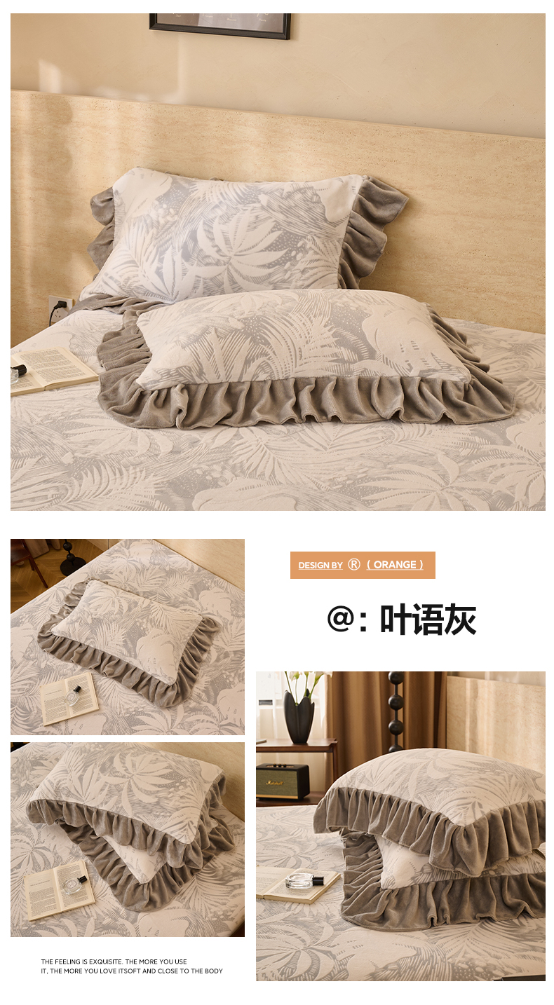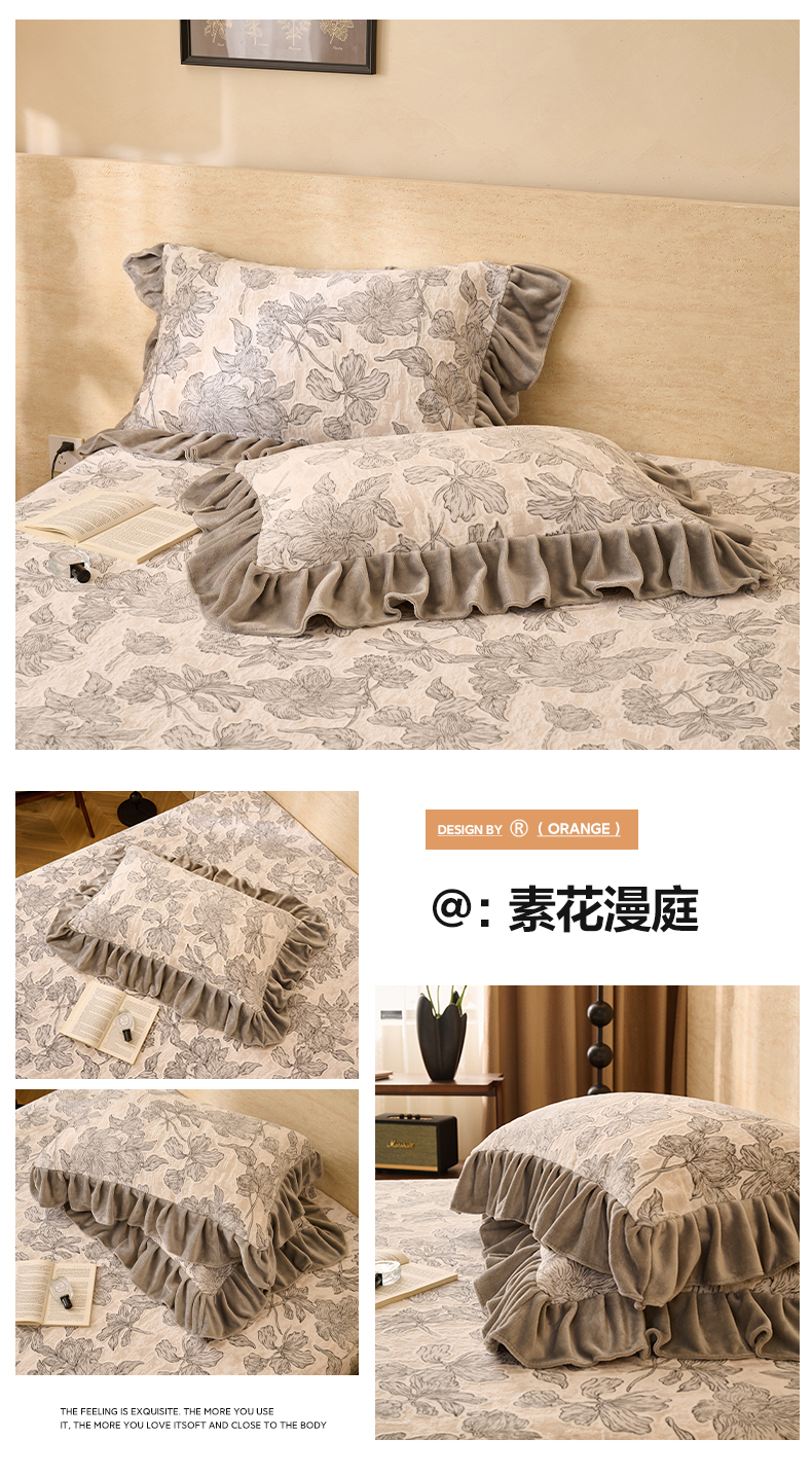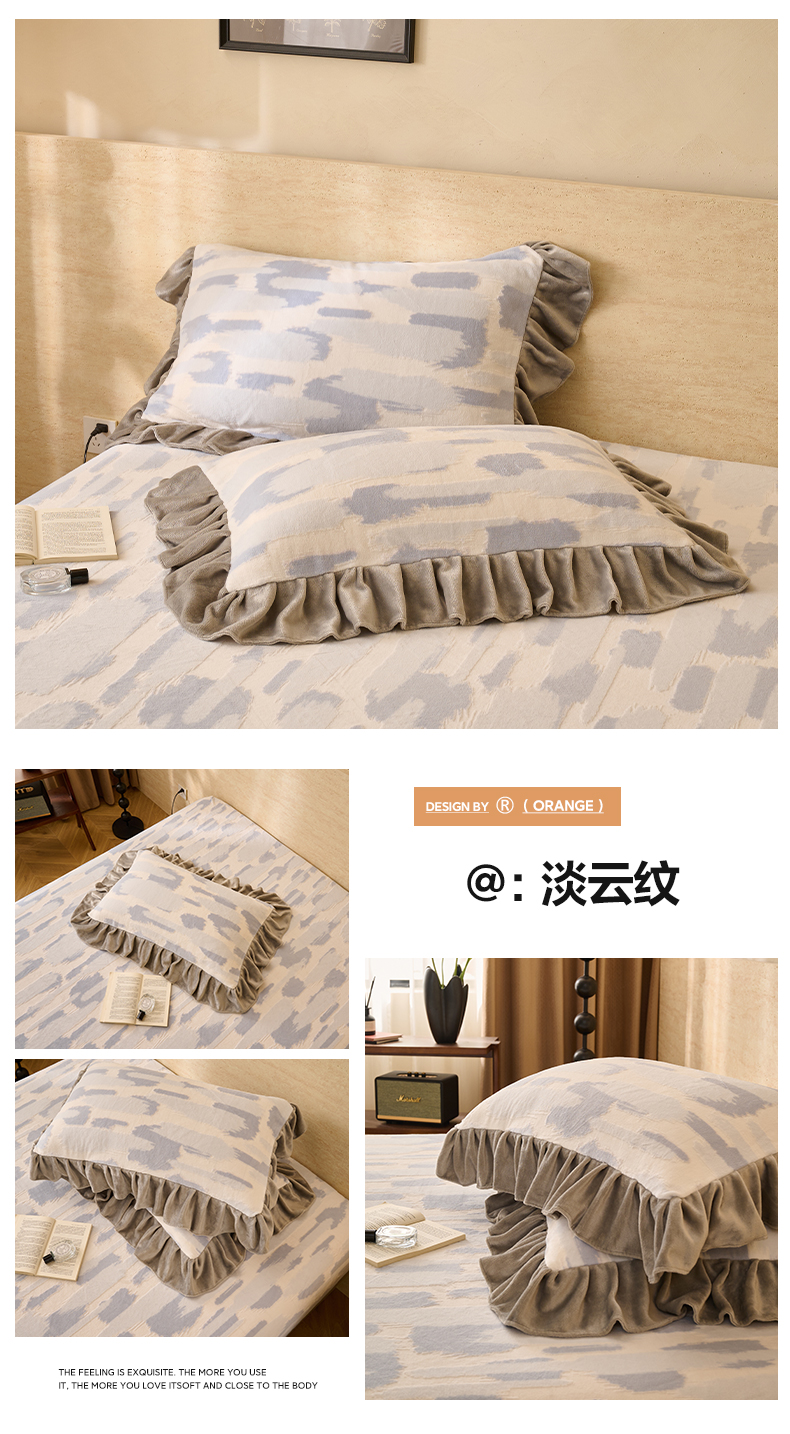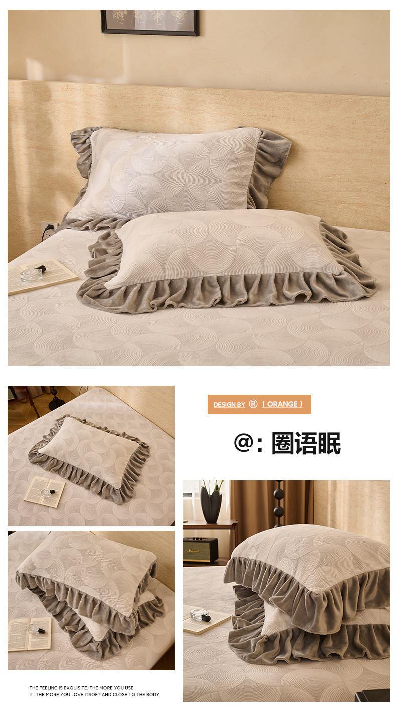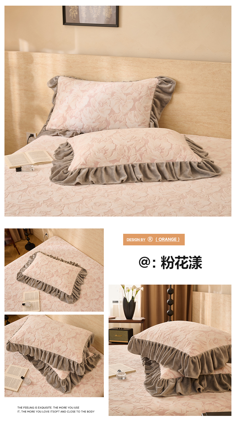 商品名称:早晨家纺 2025新款高克重牛奶绒烂花枕套 浅叙