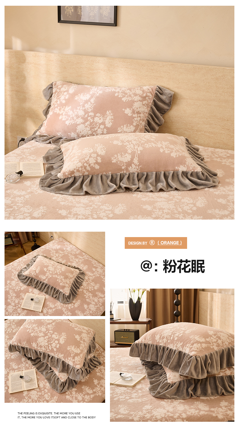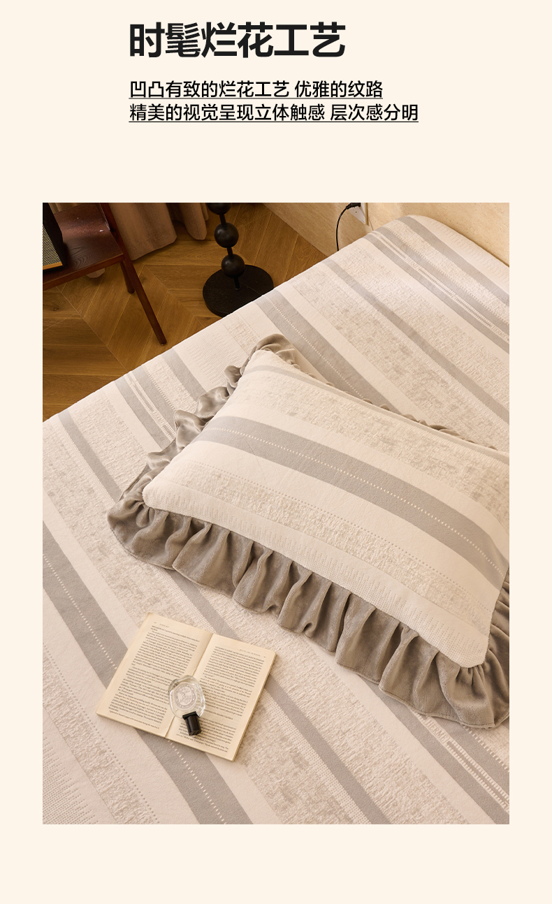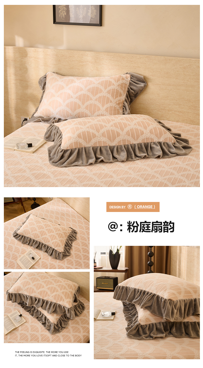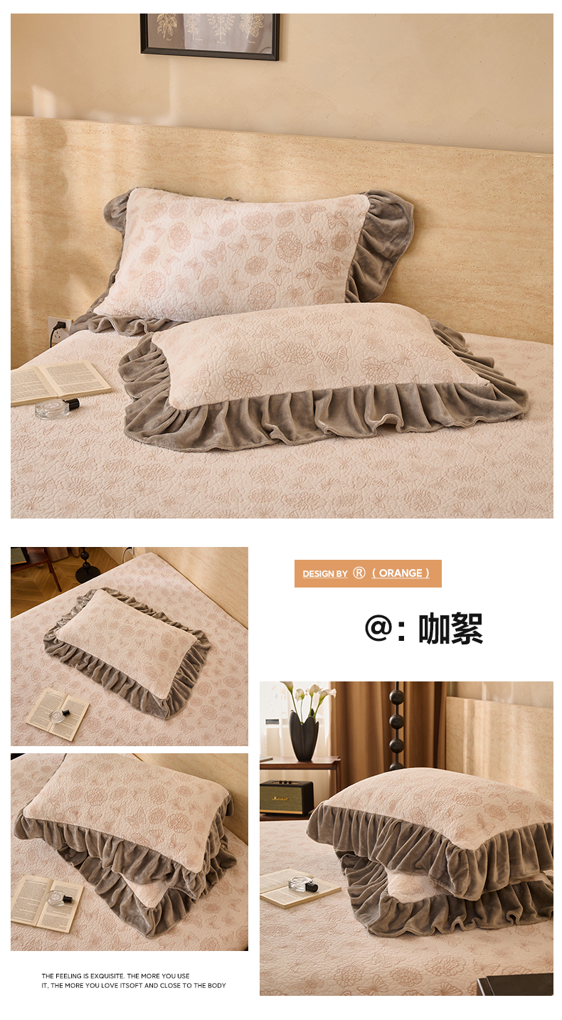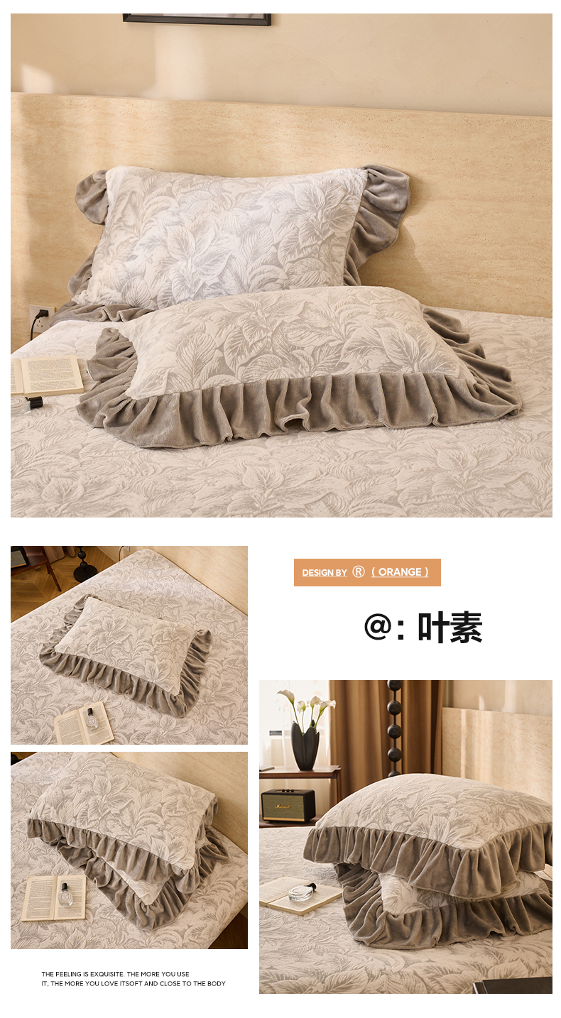 商品名称:早晨家纺 2025新款高克重牛奶绒烂花枕套 浅叙