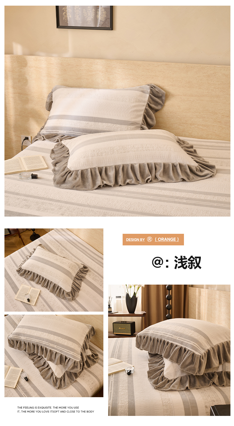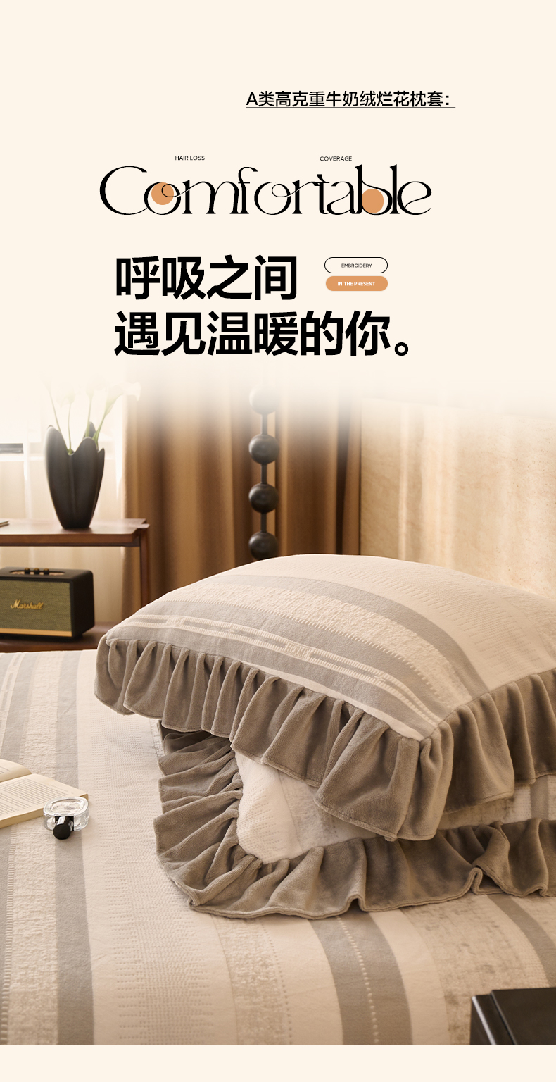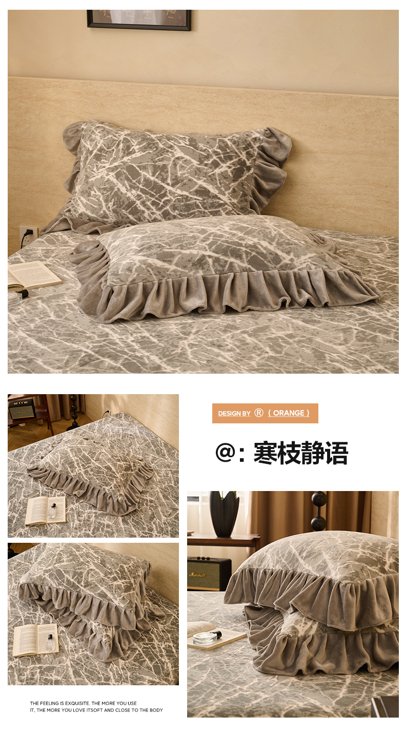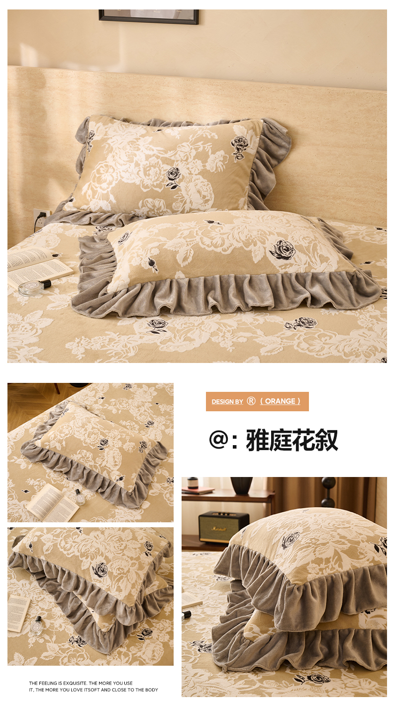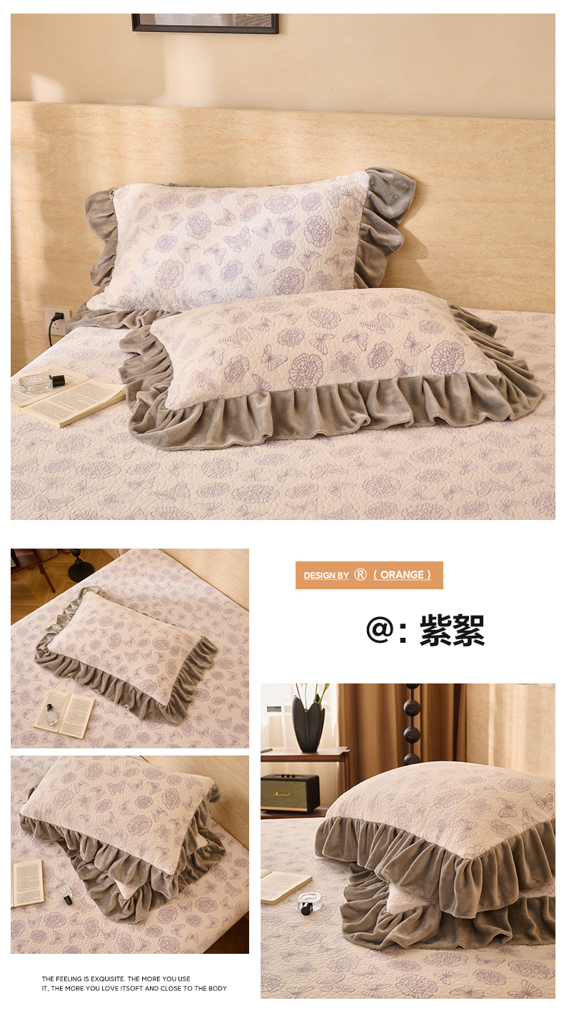 商品名称:早晨家纺 2025新款高克重牛奶绒烂花枕套 浅叙