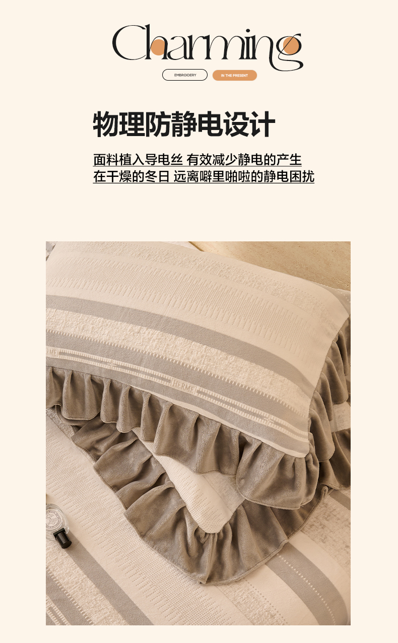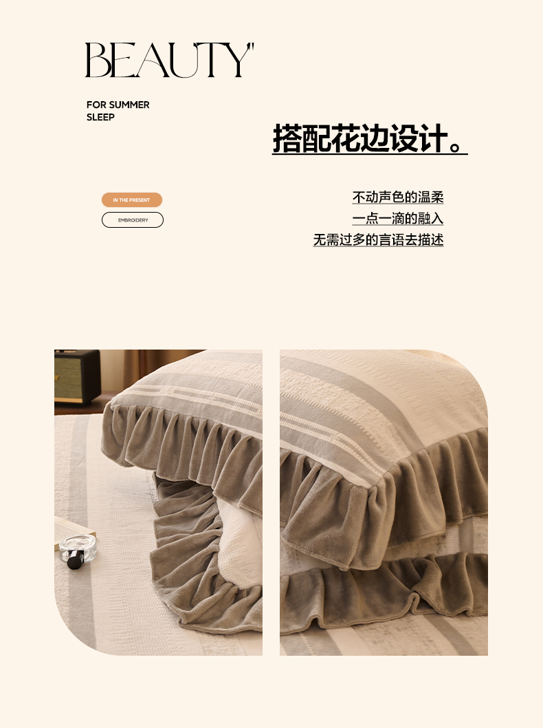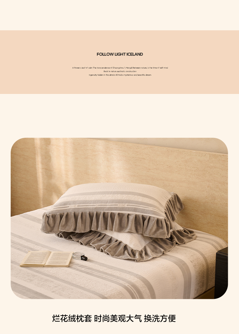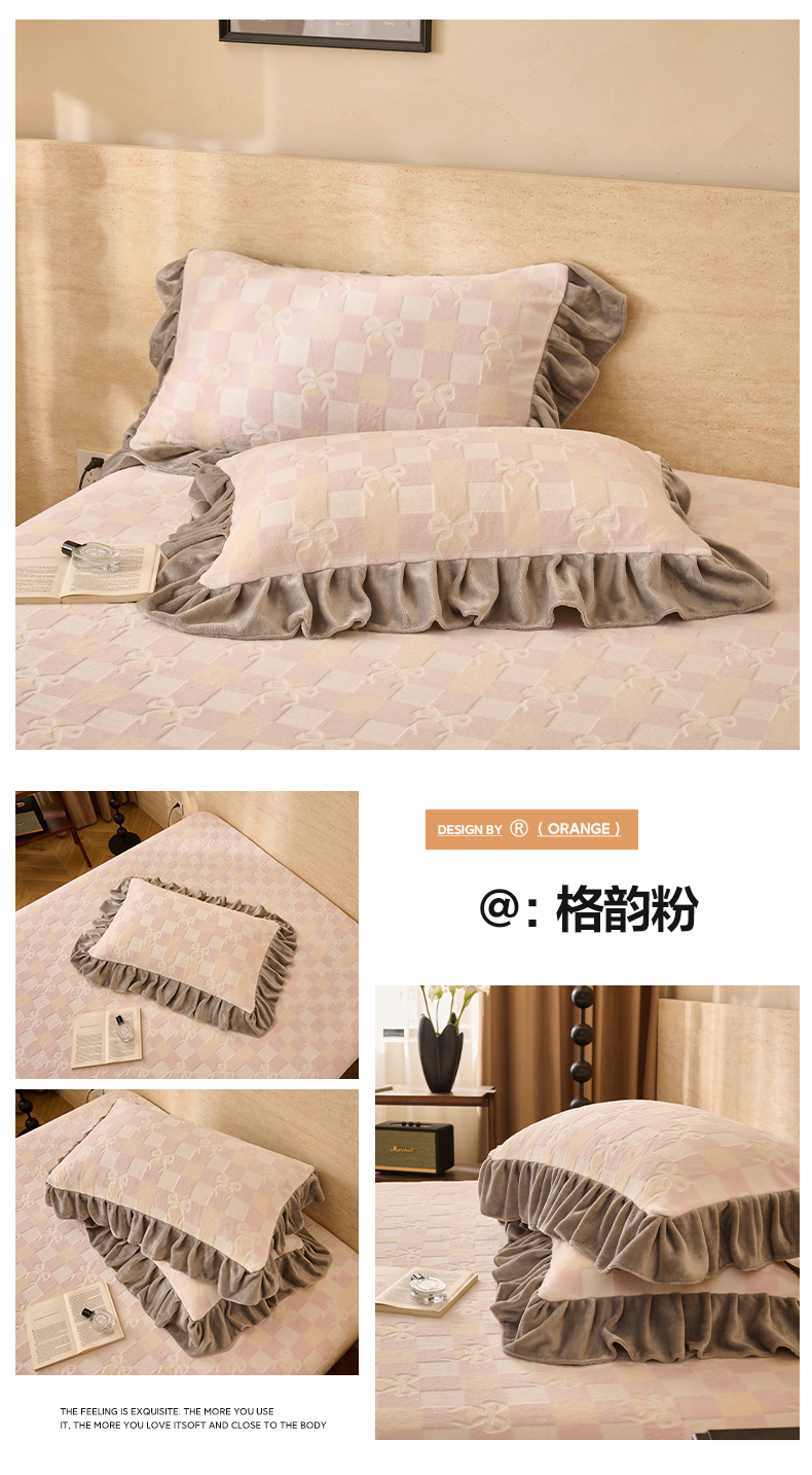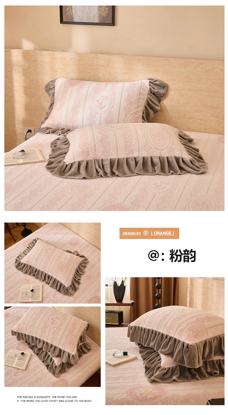 商品名称:早晨家纺 2025新款高克重牛奶绒烂花枕套 浅叙