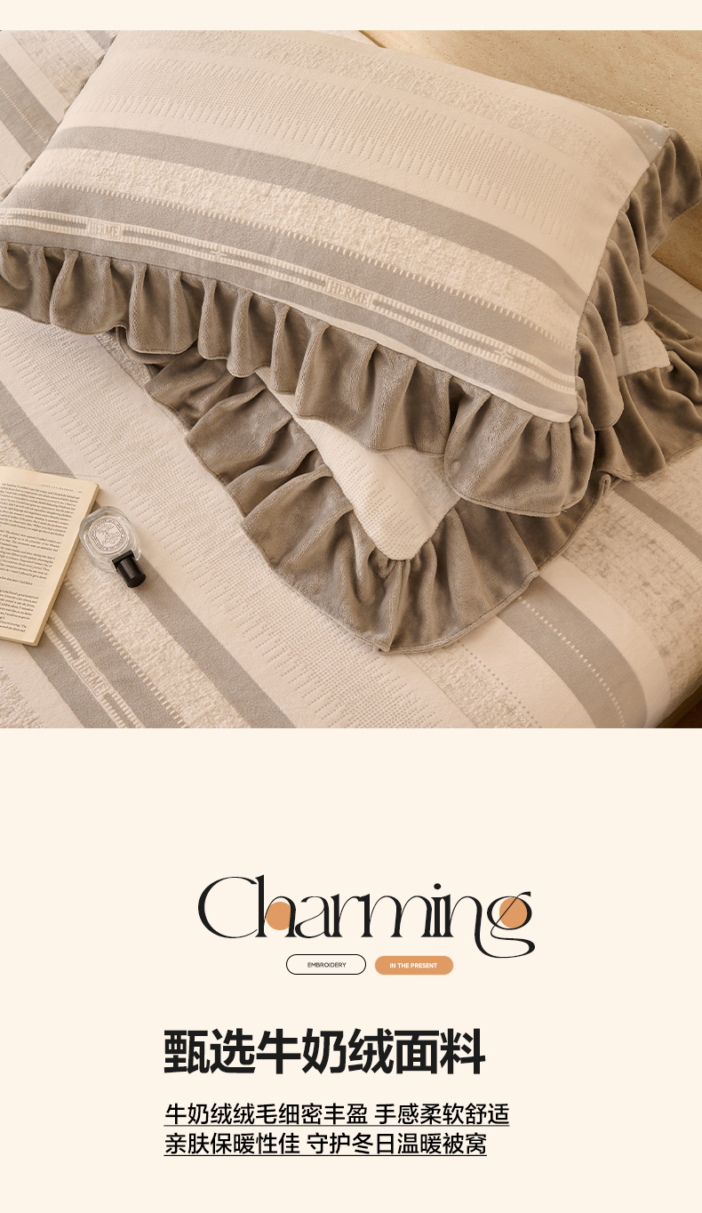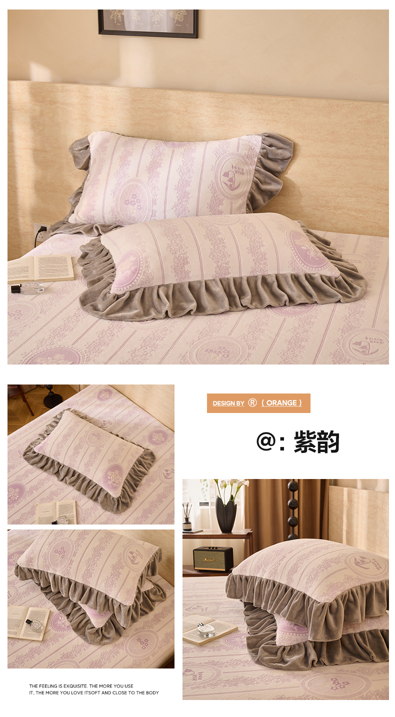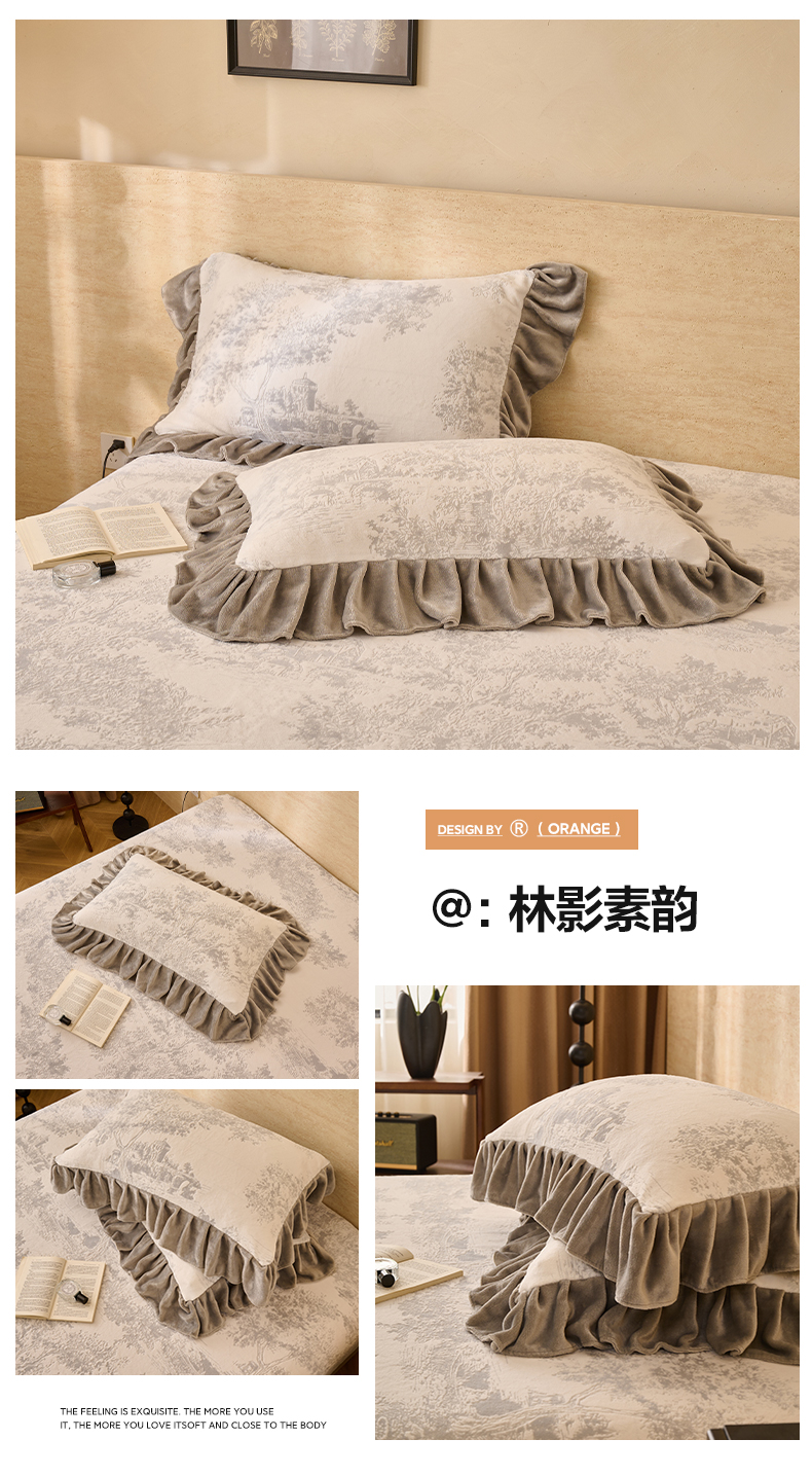 早晨家纺 2025新款高克重牛奶绒烂花枕套 浅叙